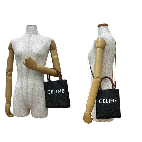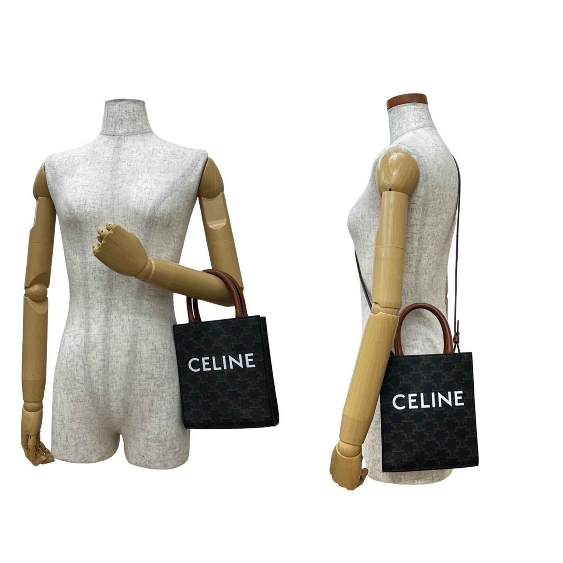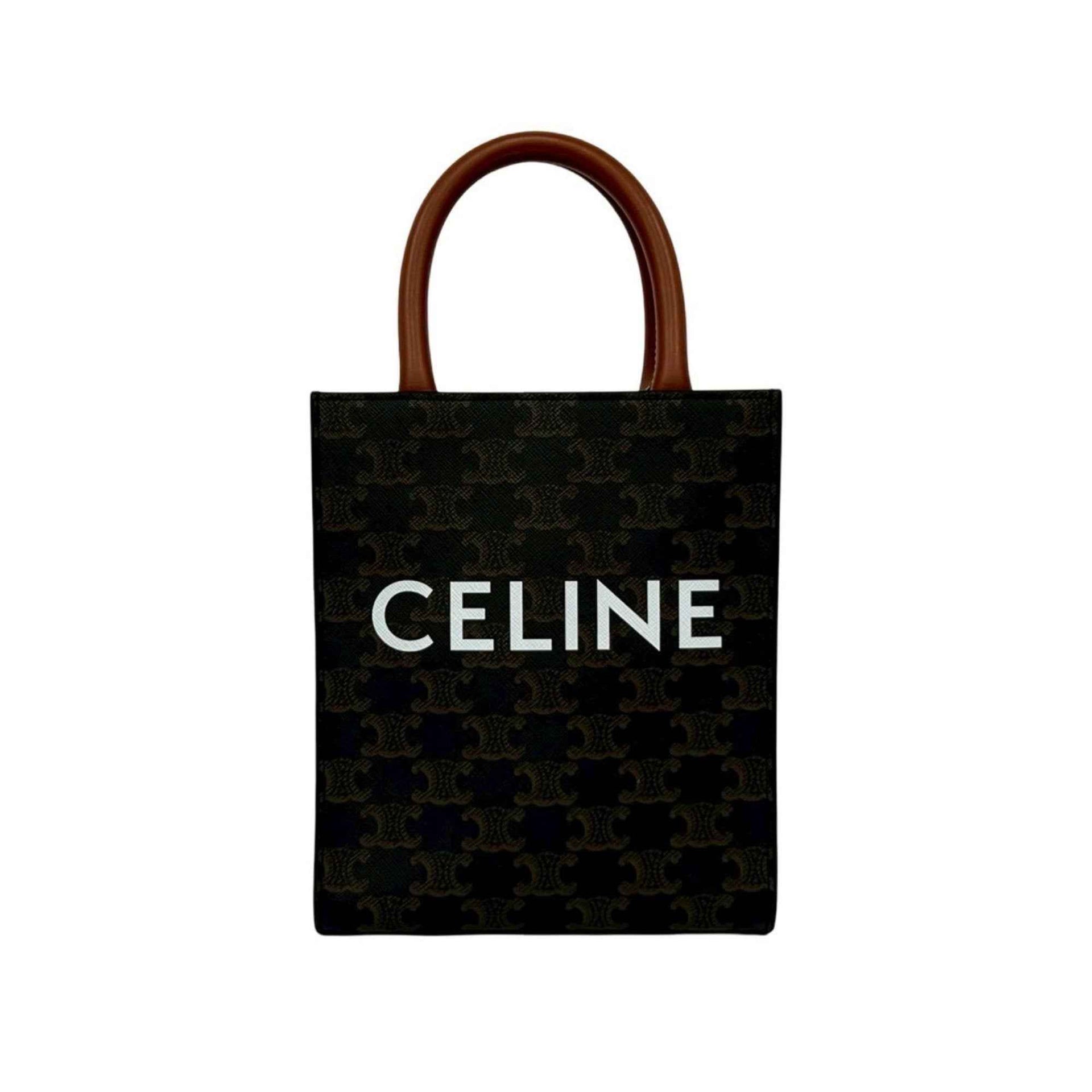 CELINE Vertical Cabas Leather 2-Way Handbag, Mini Tote Bag, Shoulder Brown/Black 65082