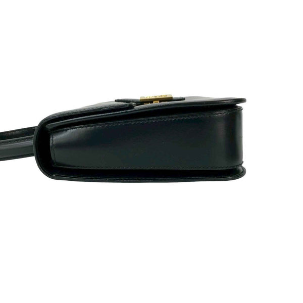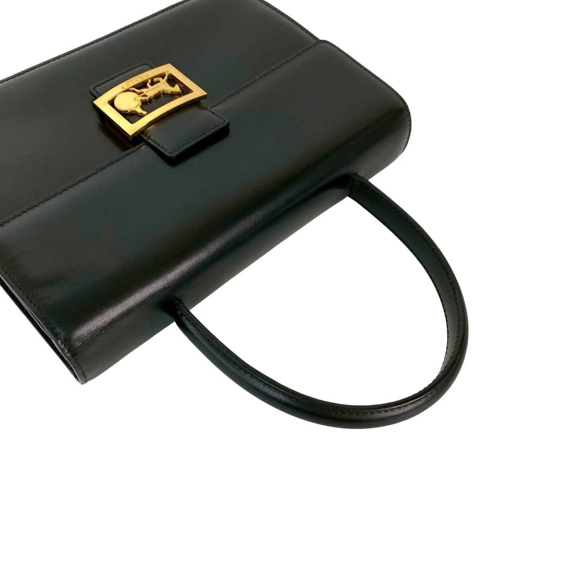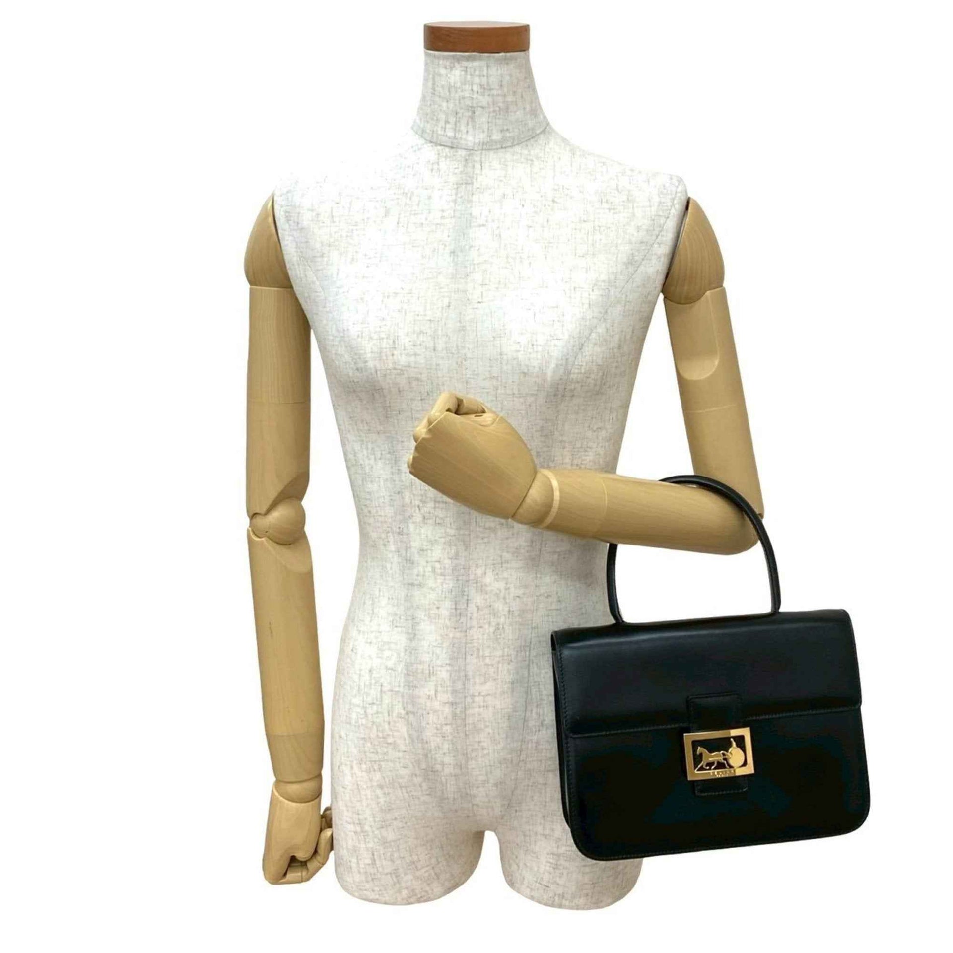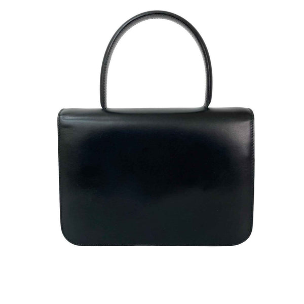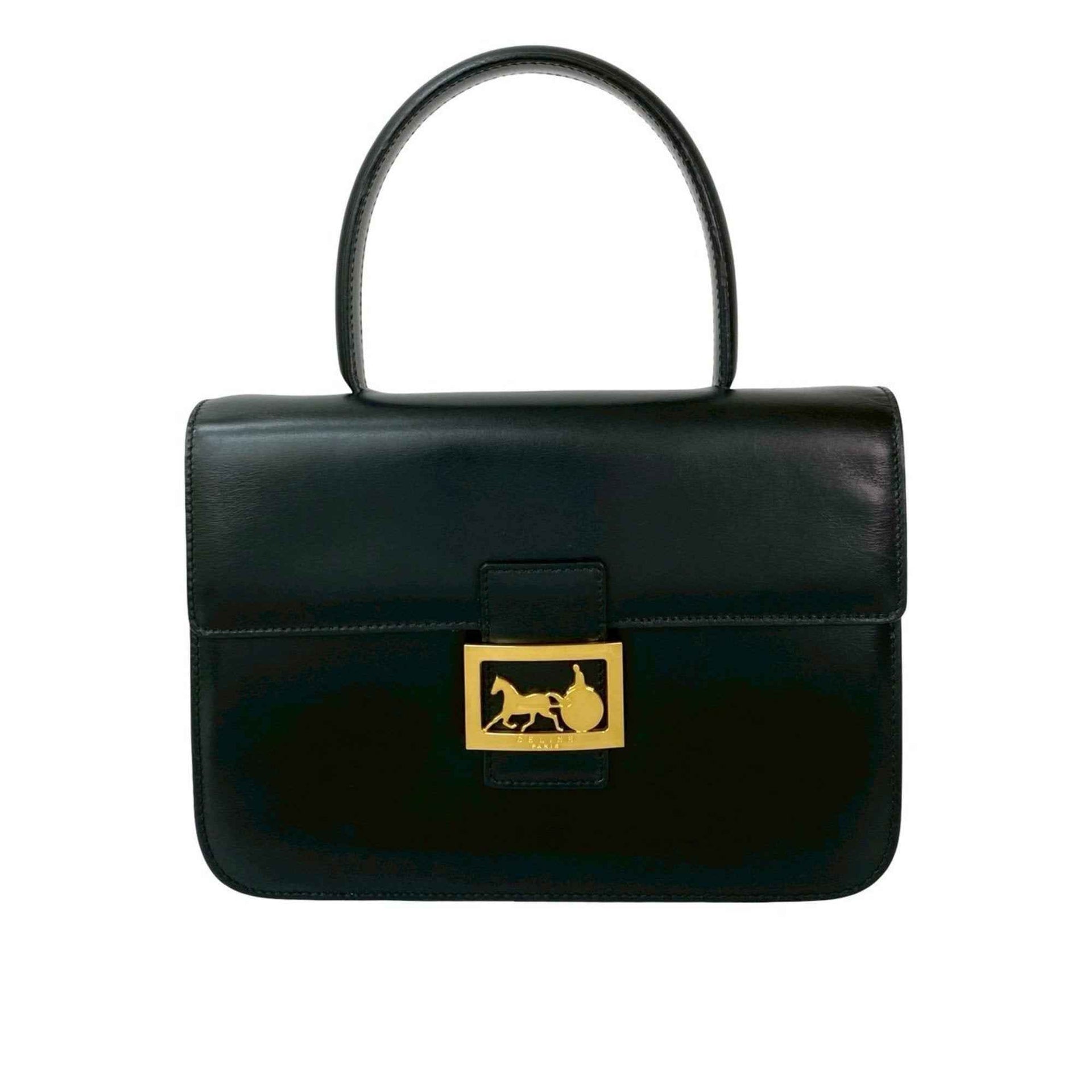 CELINE Vintage Logo Carriage Hardware Calf Leather Handbag Mini Tote Bag Black 305-4