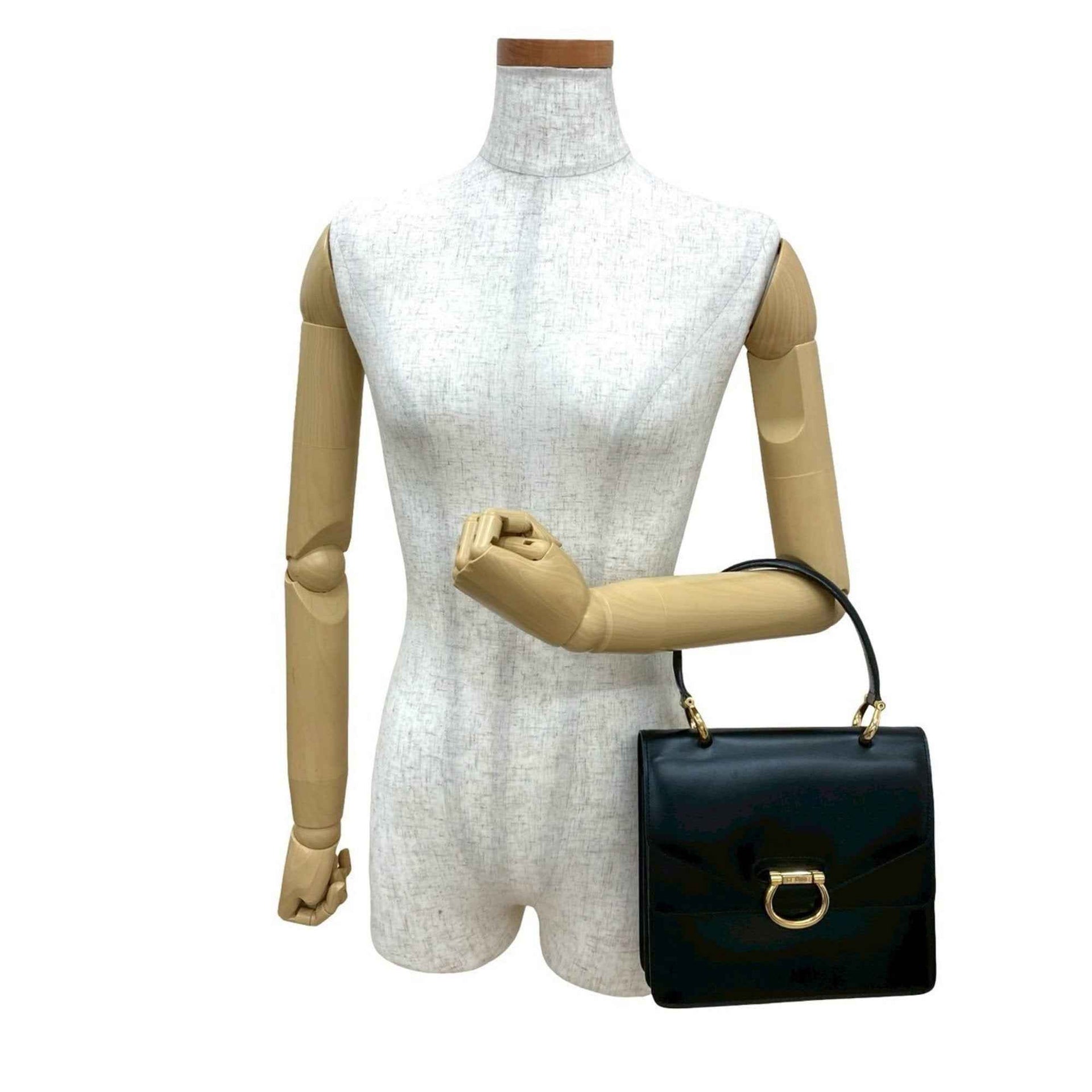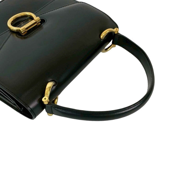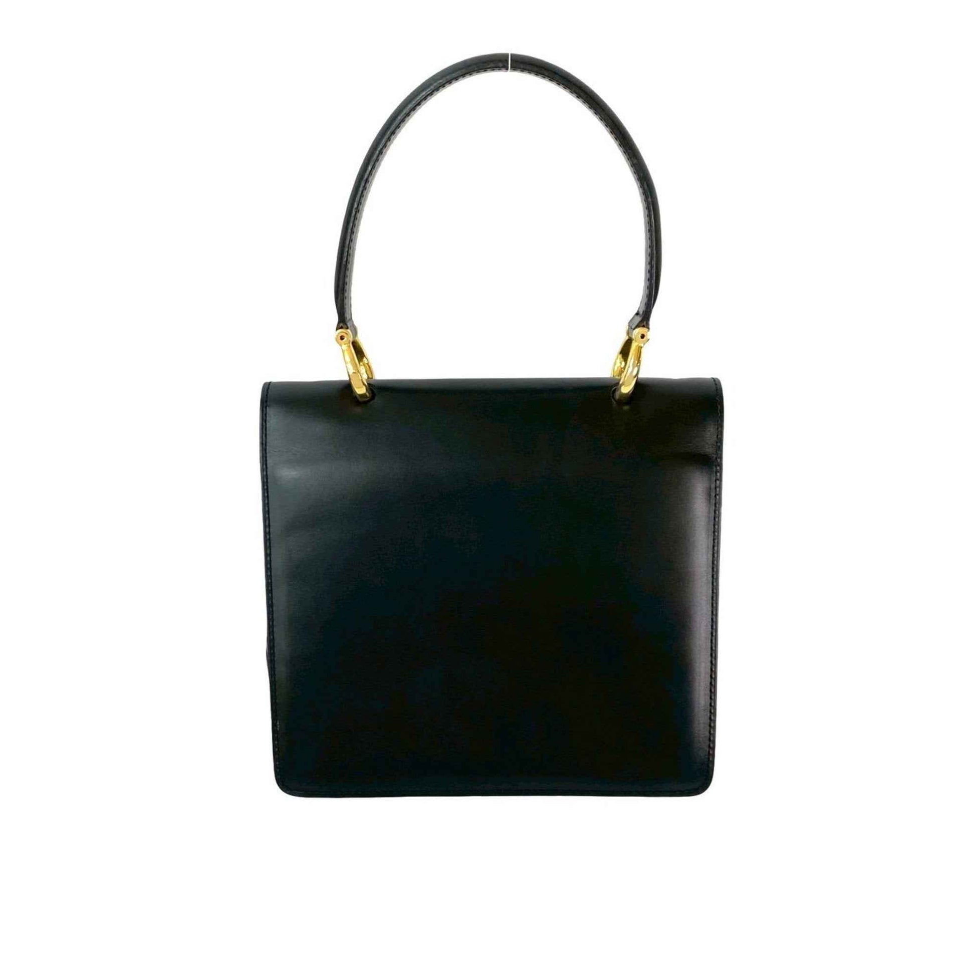 CELINE Vintage Logo Hardware Calf Leather Handbag Mini Tote Bag Black 415-8
