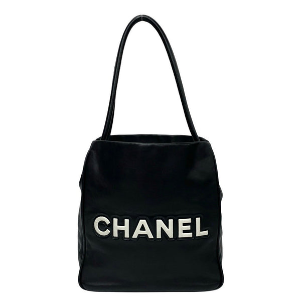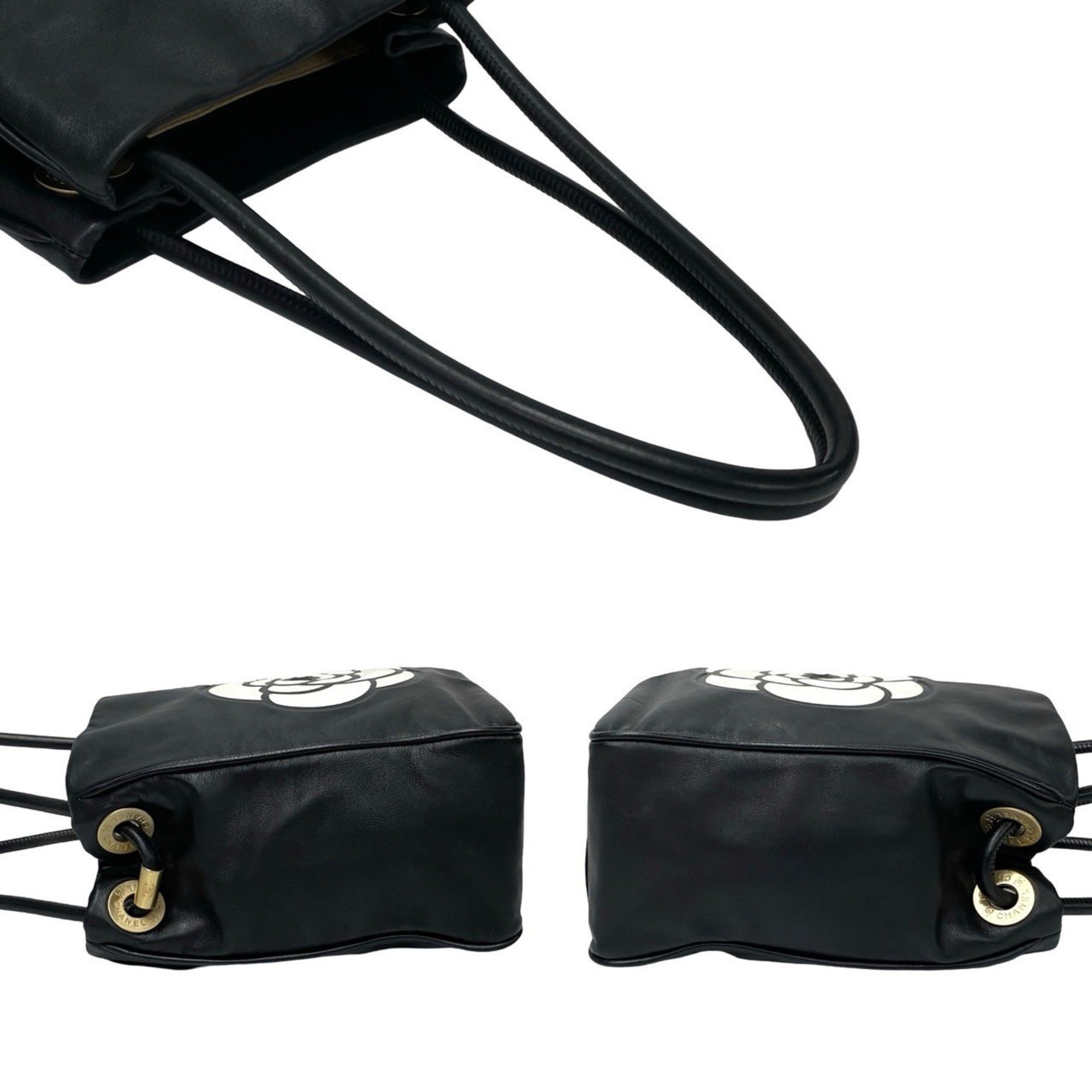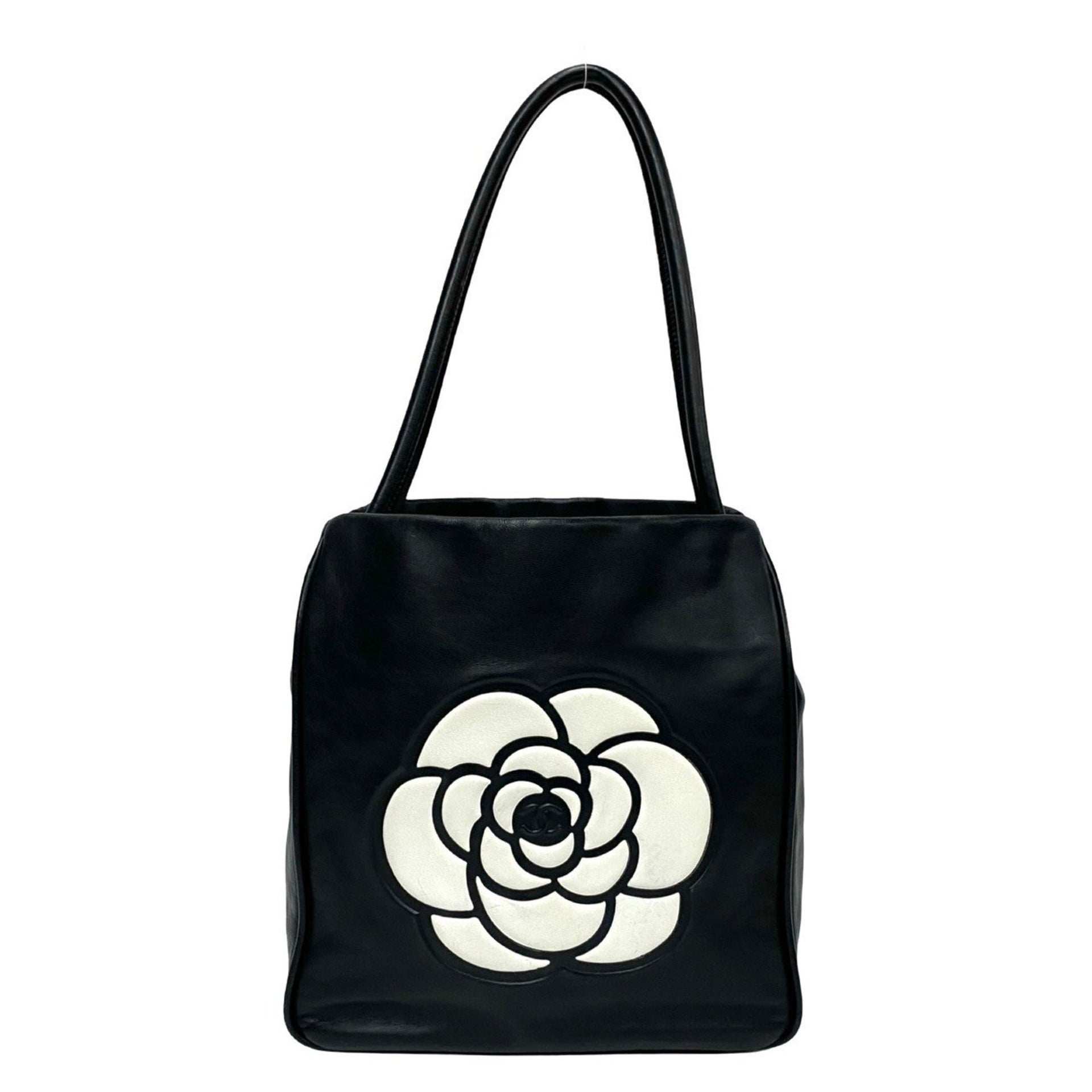 CHANEL Camellia Logo Lambskin Tote Bag, Semi-Shoulder Handbag, Black, mnf29-9