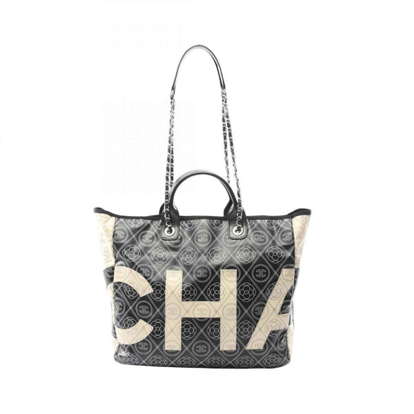 CHANEL Coco Mark Camellia Tote Bag, Coated Canvas and Leather, Women\'s, Black Beige