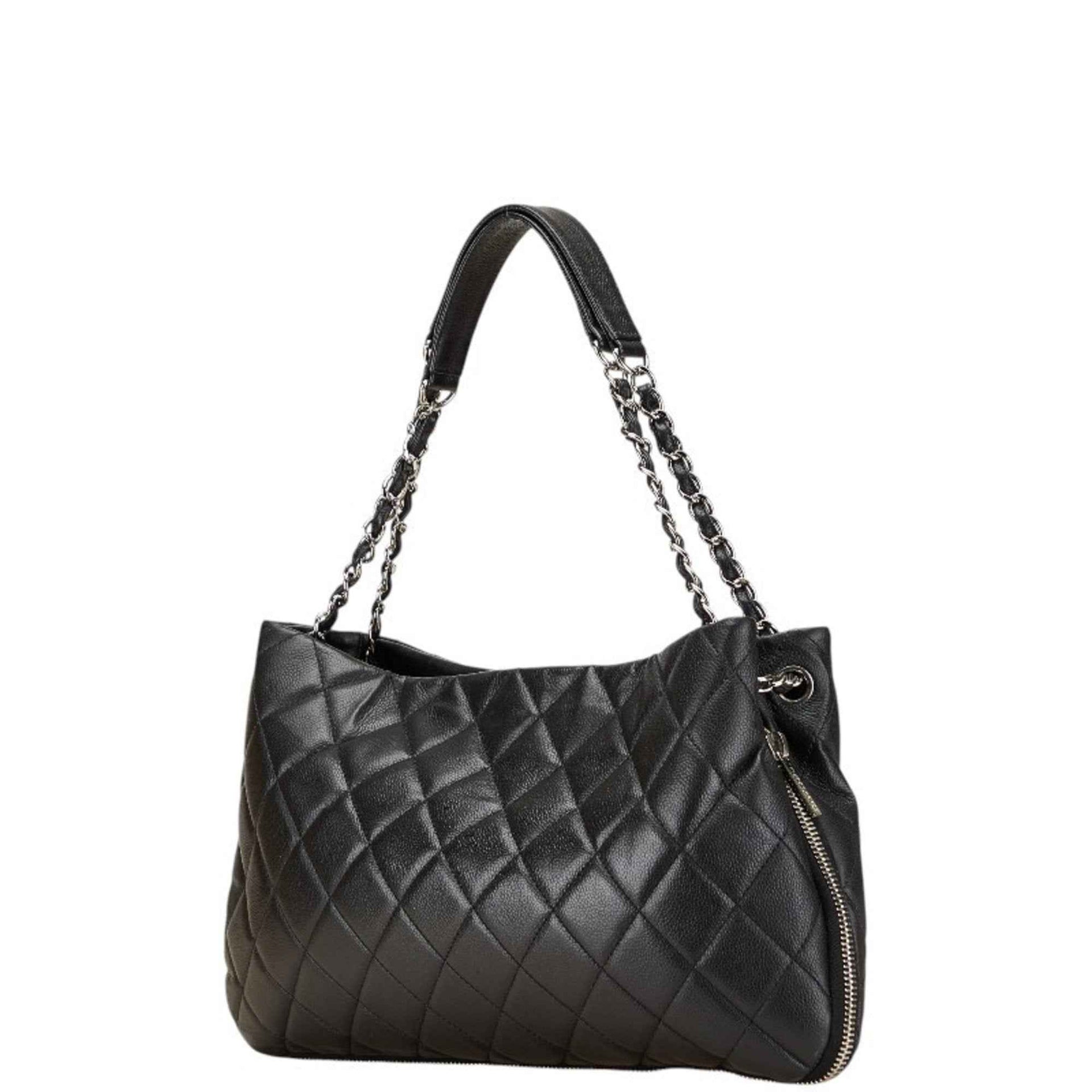 CHANEL Coco Mark Matelasse Chain Tote Bag in Black Soft Caviar Leather for Women