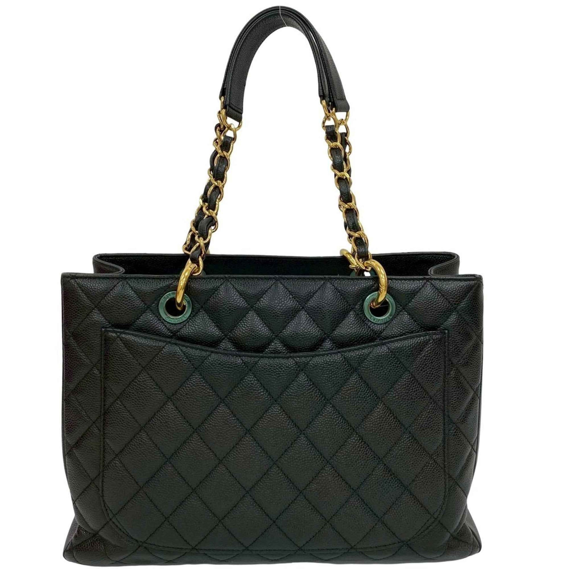 CHANEL Matelasse Coco Mark Caviar Leather Chain Tote Bag, Black, 20910