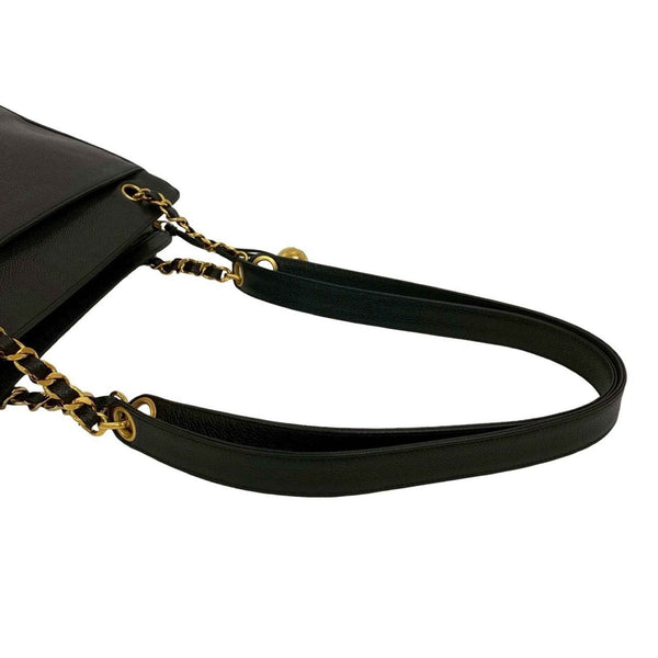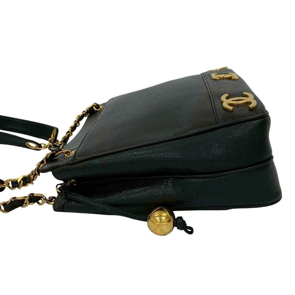 CHANEL Triple Coco Caviar Leather Chain Tote Bag, Black, 53679