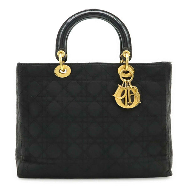 Christian Dior Lady Cannage Handbag Tote Bag in Black Nylon