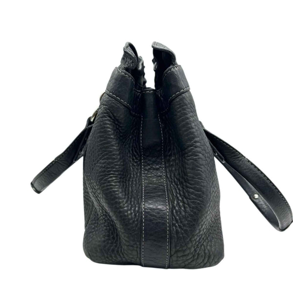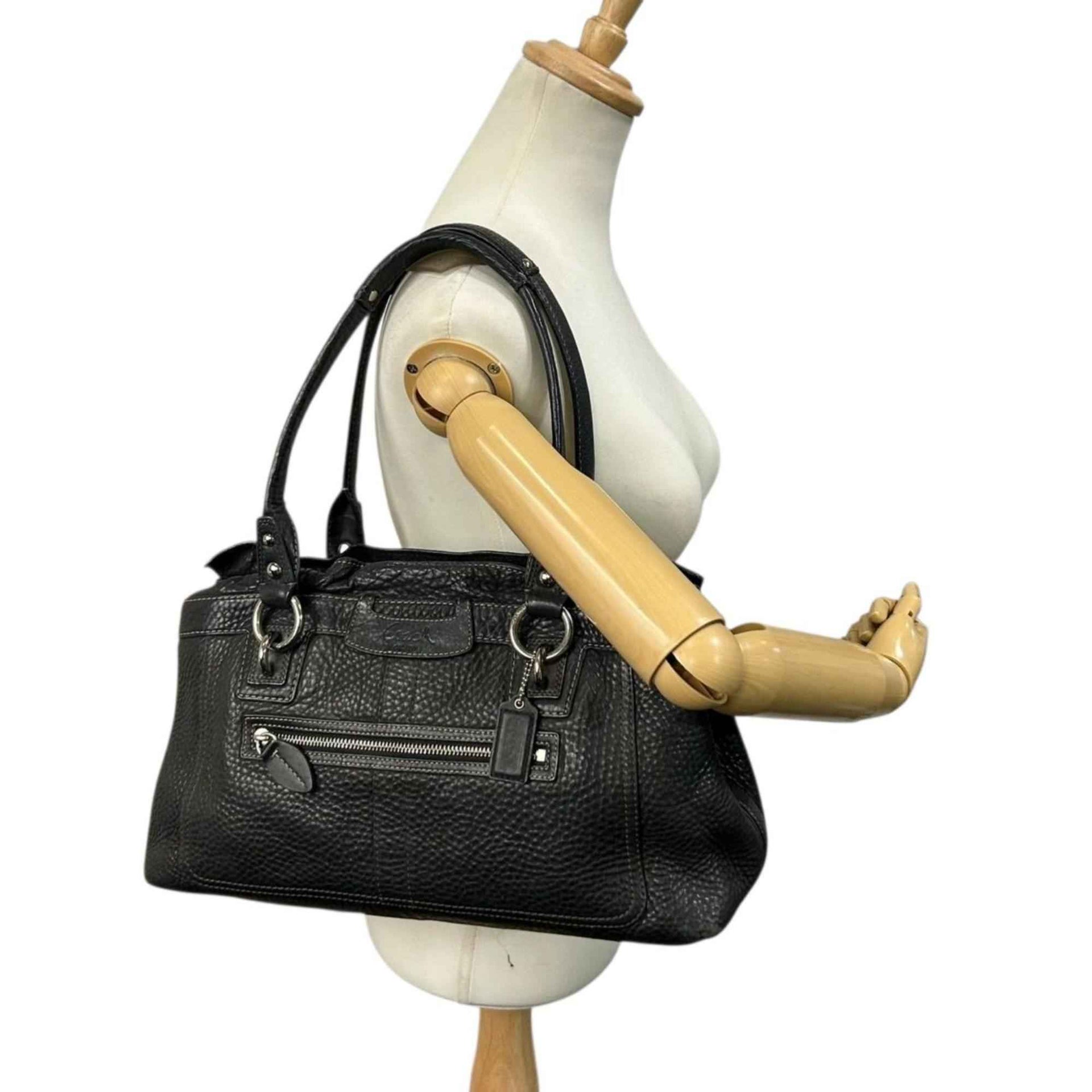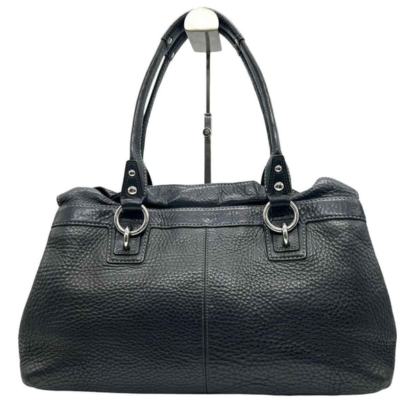 Coach handbag, tote bag, one-shoulder pebbled leather, black, silver hardware, women\'s size s50