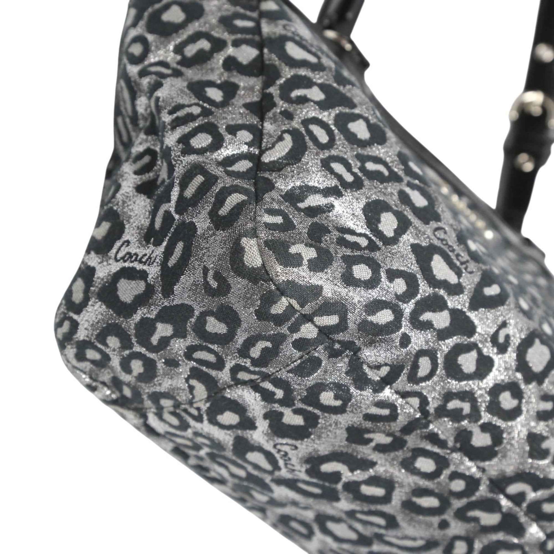 Coach handbag, tote bag, shoulder leopard print canvas, F17675, silver and black
