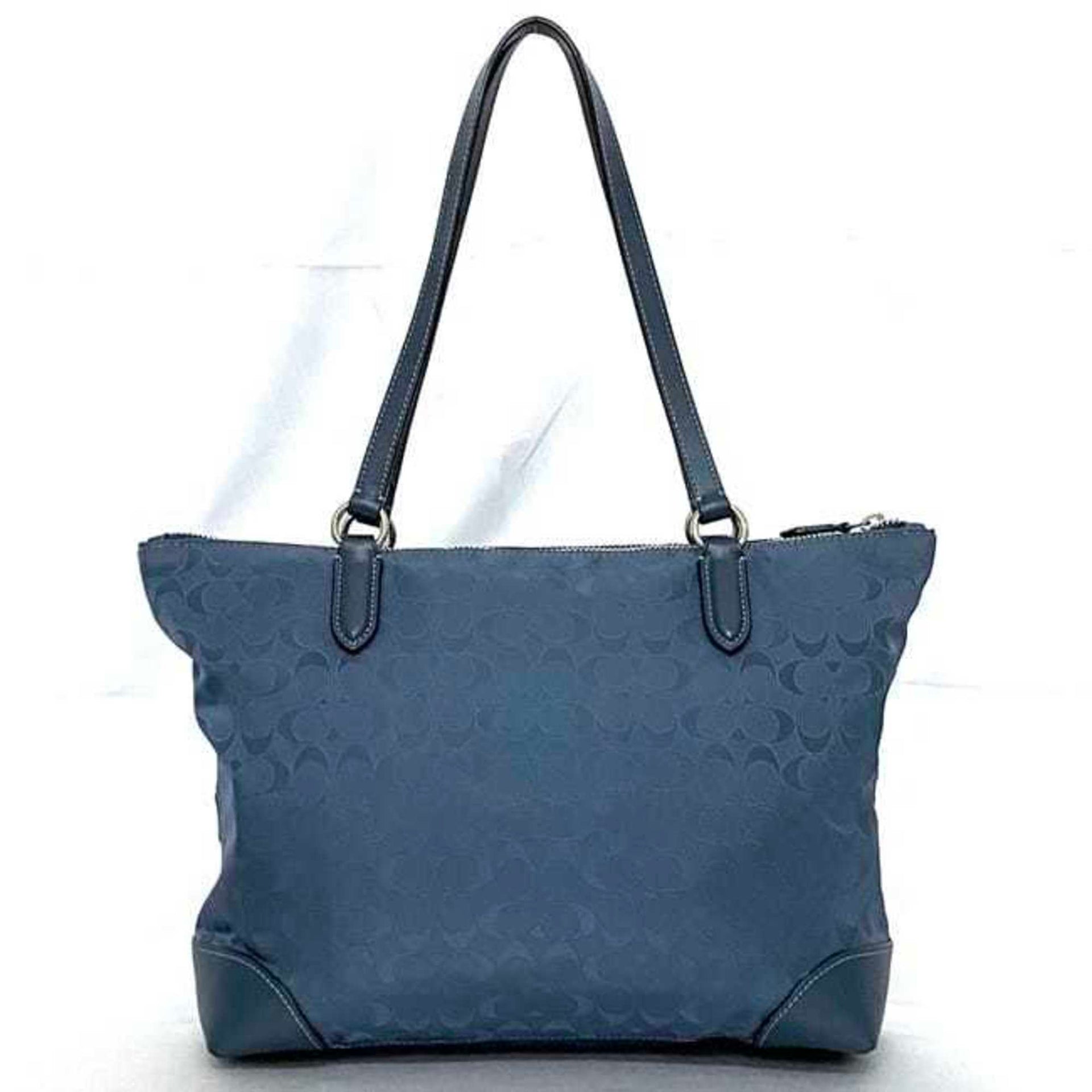 Coach Tote Bag ec-21800 Navy Gray Signature F73184 Nylon Leather COACH Women\'s Blue