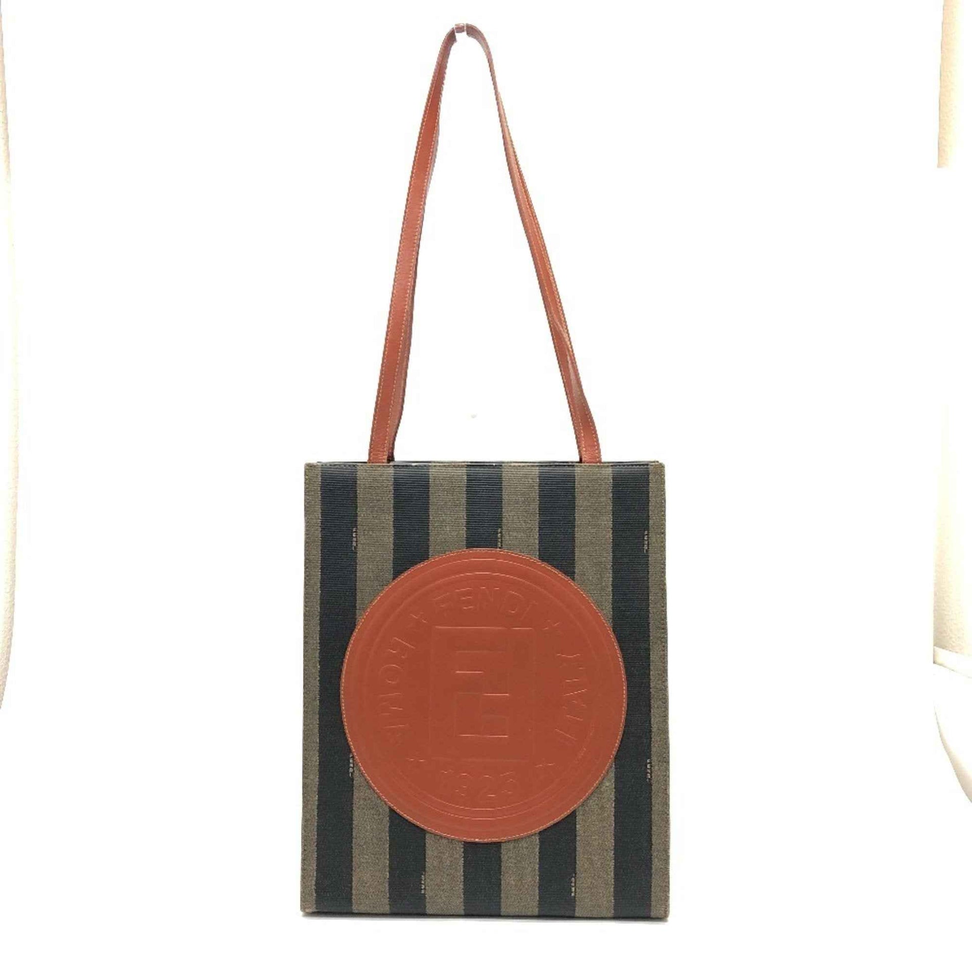 FENDI Pecan Logo Tote Bag, Shoulder PVC/Leather, Women\'s, Khaki