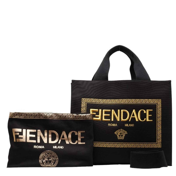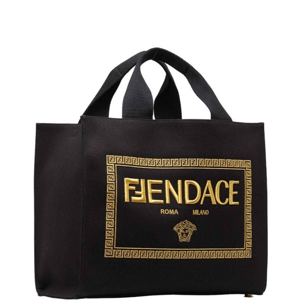 FENDI x VERSACA Versace FENDACE Fendace La Medusa Tote Bag Shoulder 8BH395 Black Yellow Canvas Women\'s