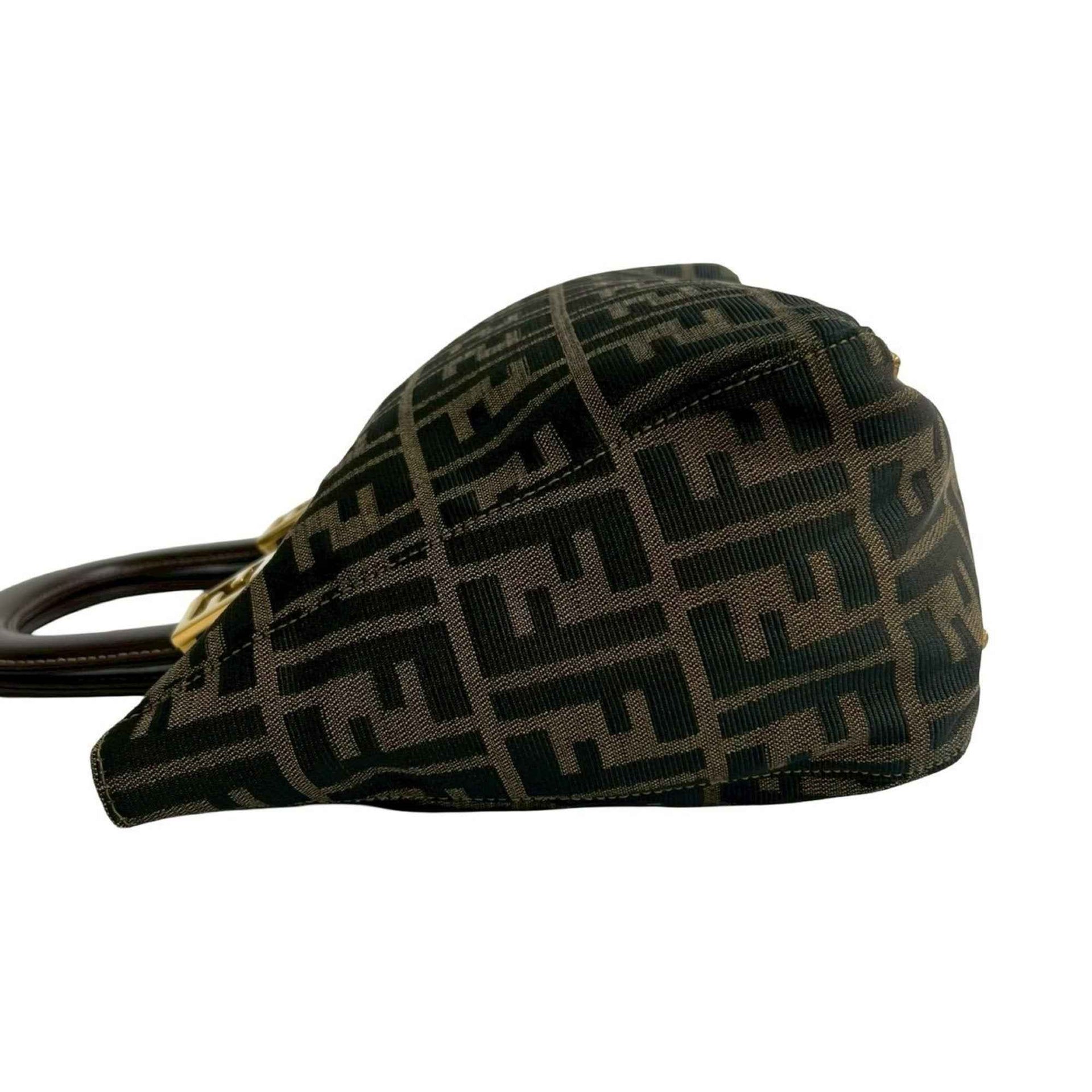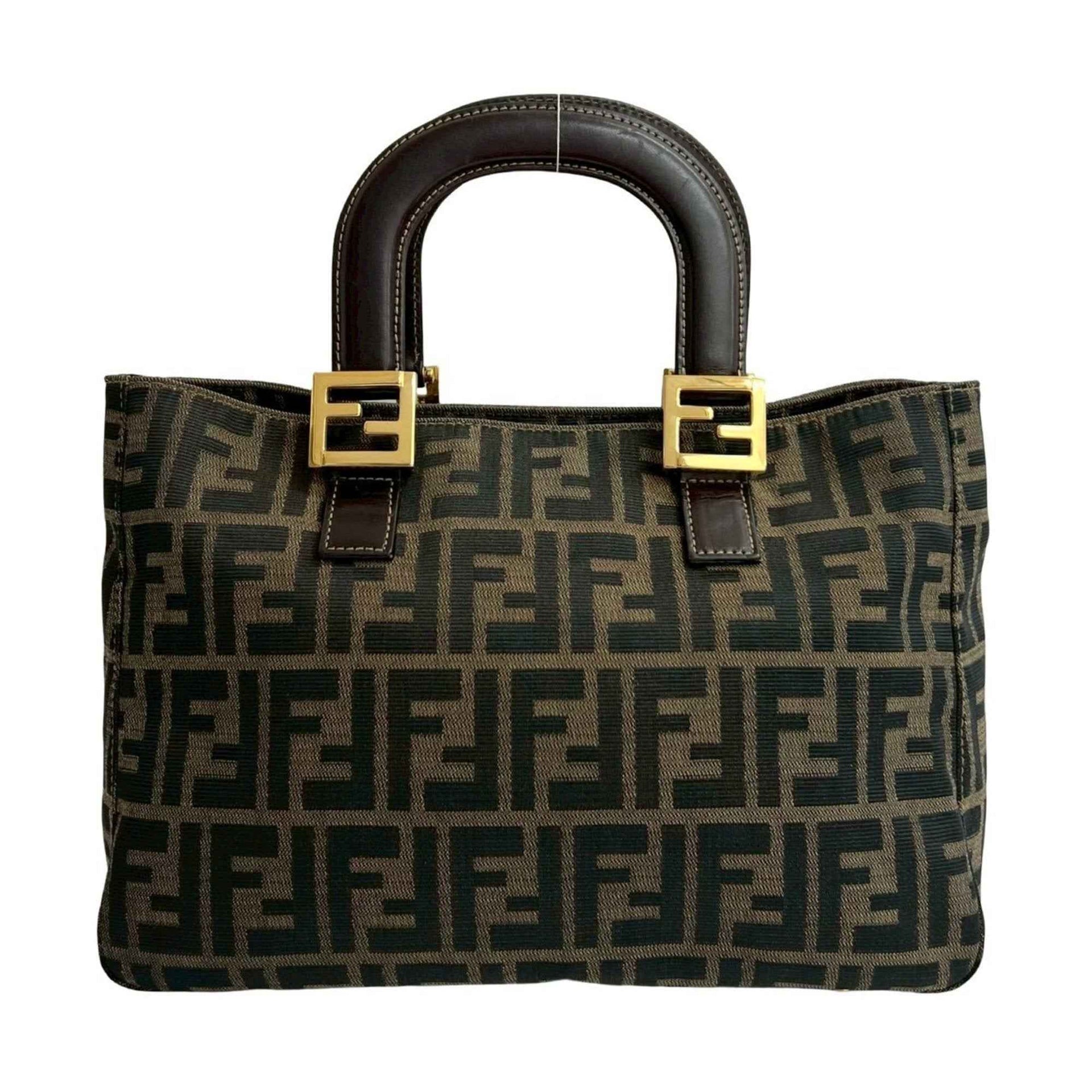 FENDI Zucca FF pattern logo metal hardware canvas and leather handbag mini tote bag brown black 19151