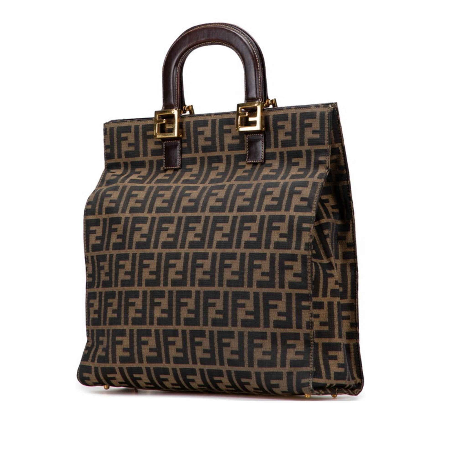 Fendi Zucca Tote Bag, Brown Canvas and Leather, Women\'s, FENDI