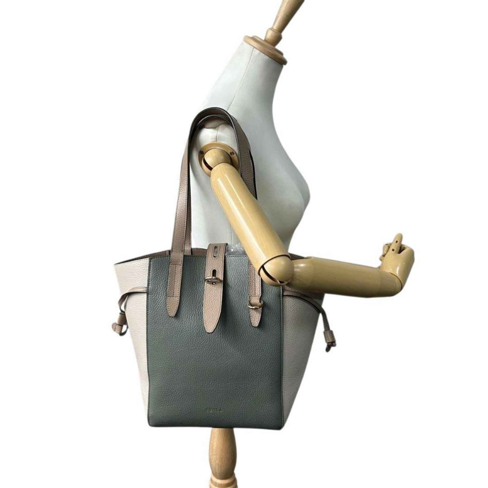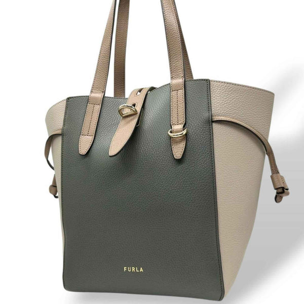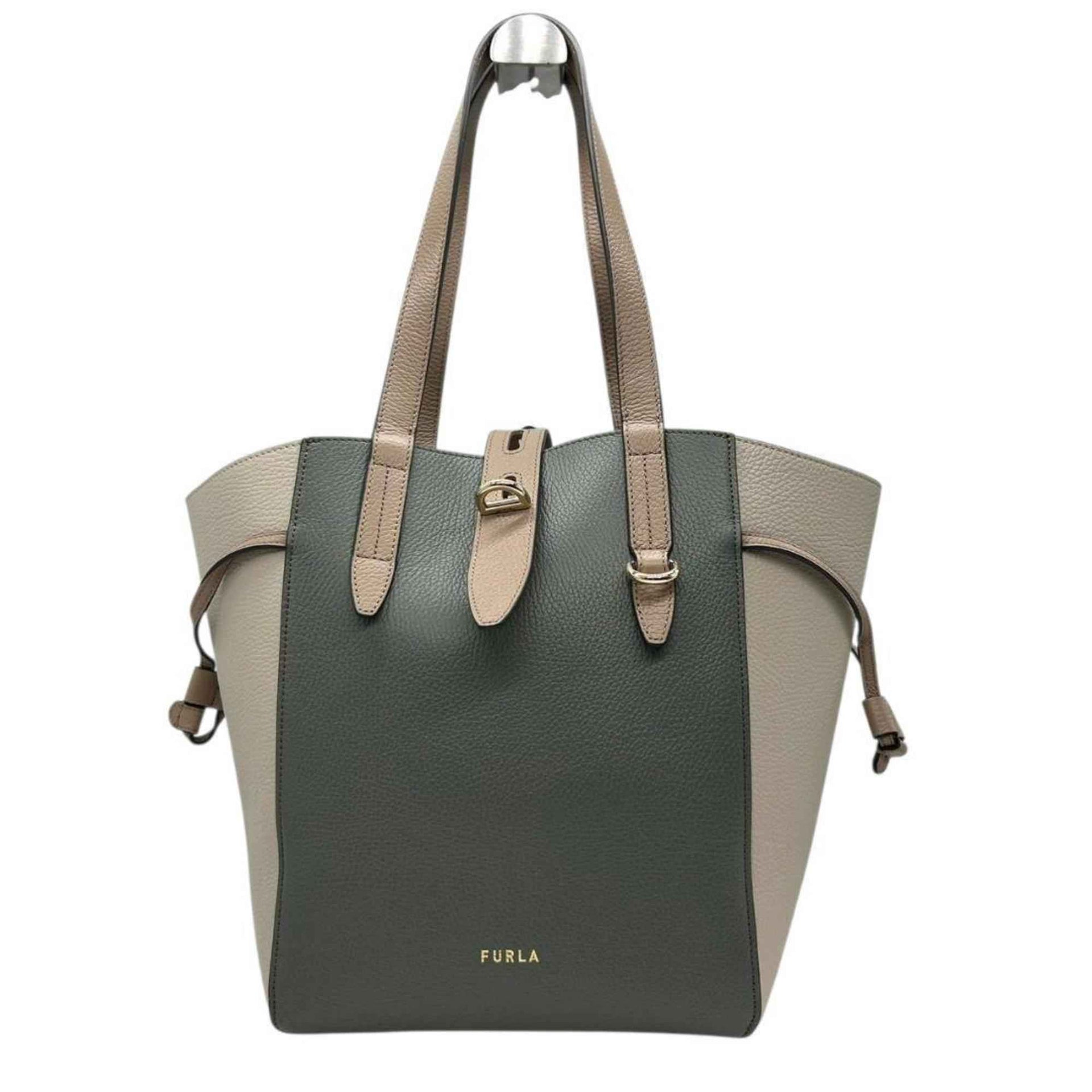 Furla tote bag, gray and beige, two-tone, size s21, one-shoulder, leather, can be worn over the shoulder, gold hardware, brand logo,