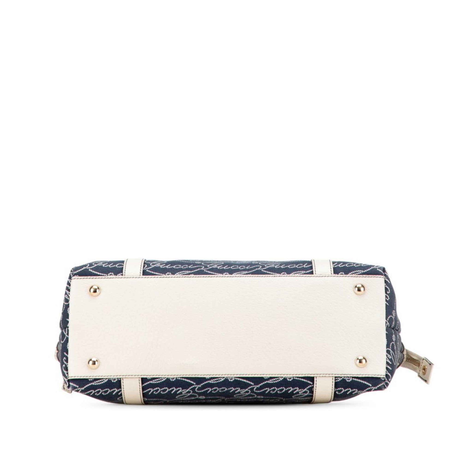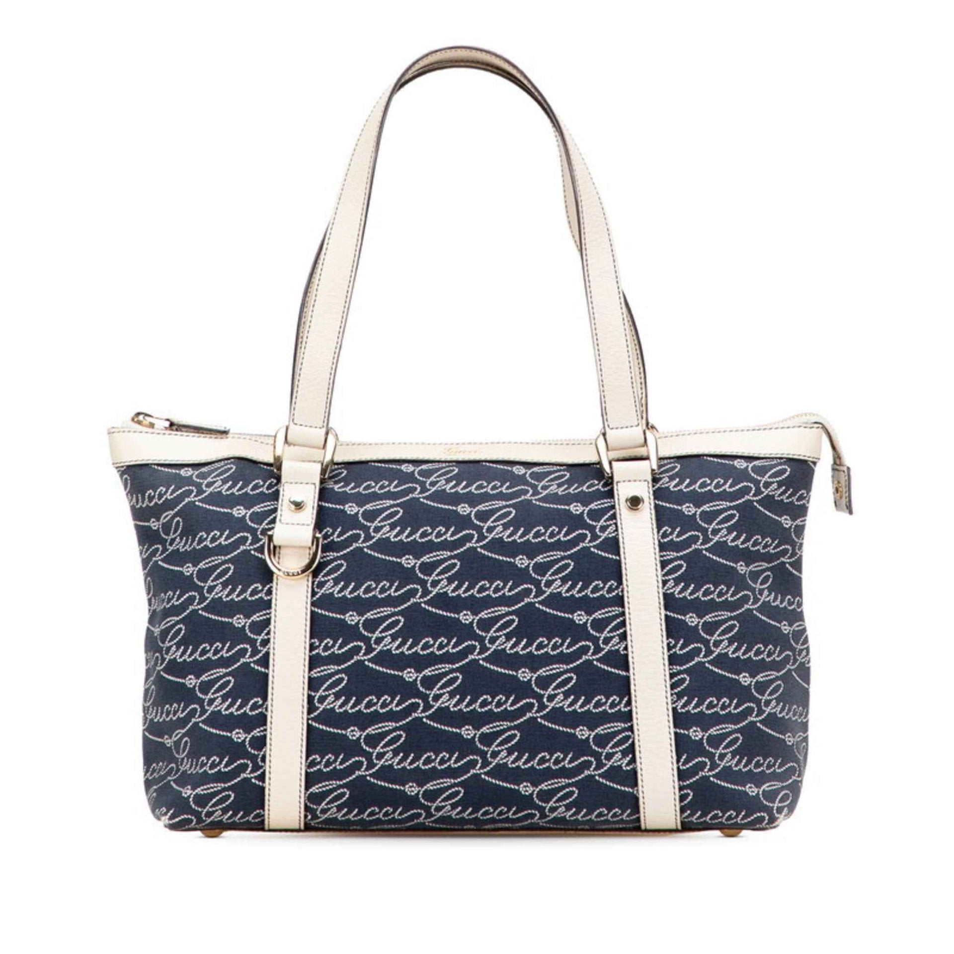 Gucci Abbey Logo Tote Bag 141470 Navy Beige Canvas Leather Women\'s GUCCI