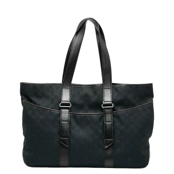 Gucci GG Canvas Tote Bag 153238 Navy Black Leather Women\'s GUCCI