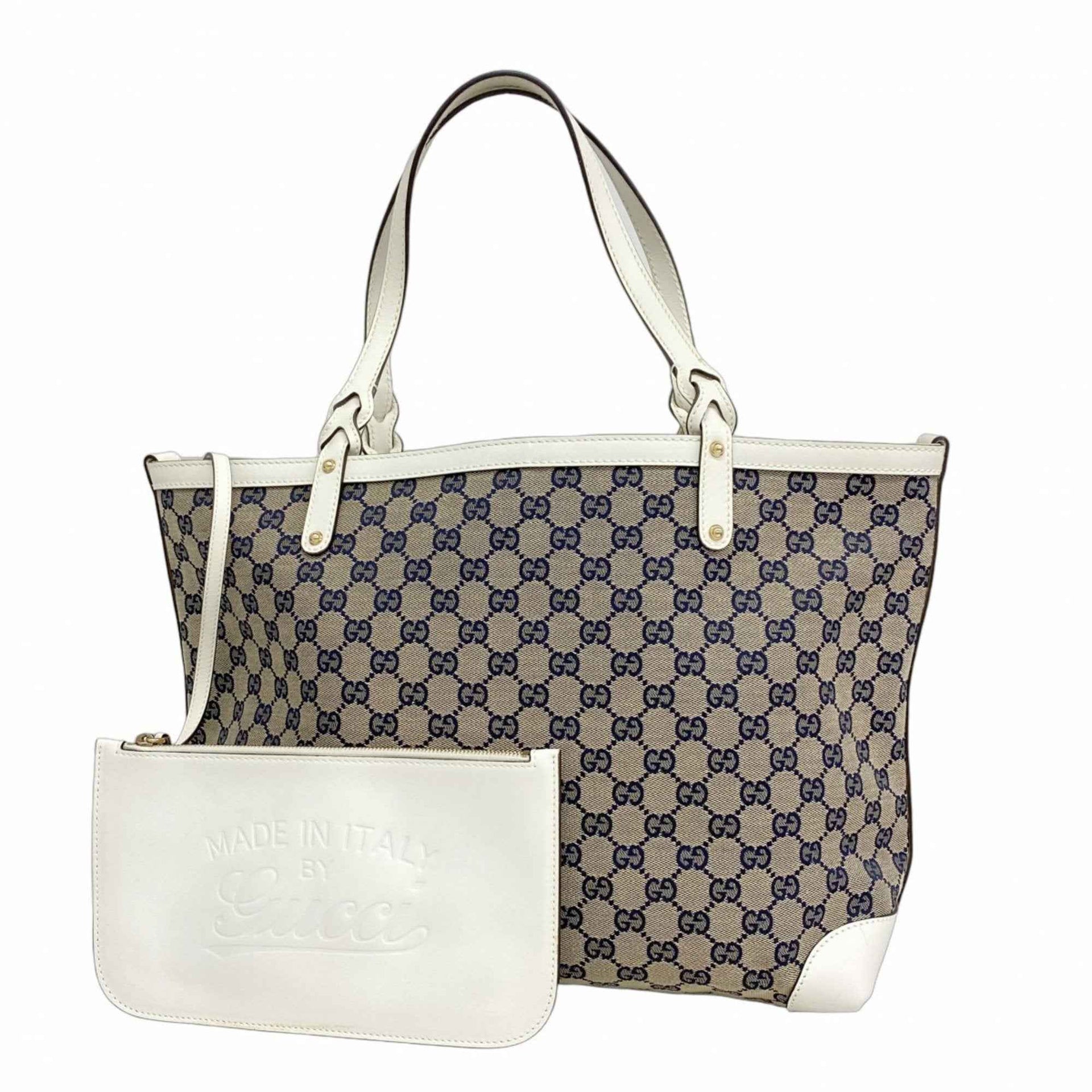 Gucci GG Canvas Tote Bag 247209 Beige Navy White Champagne Women\'s