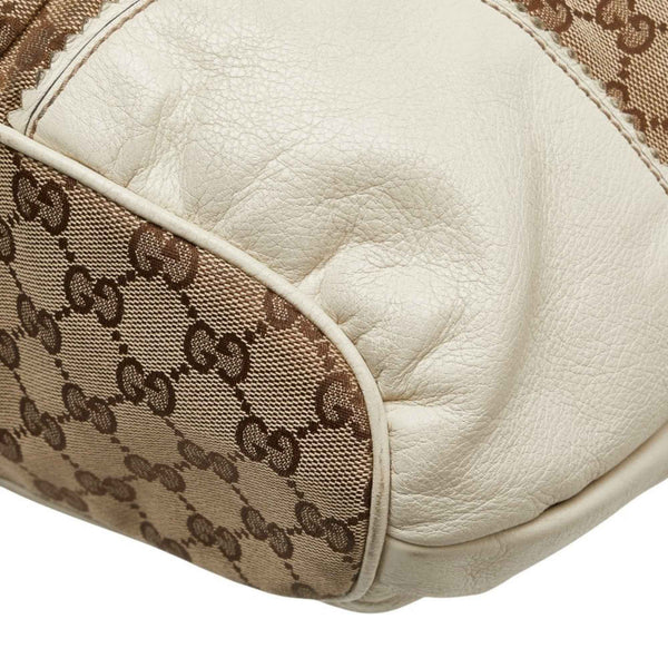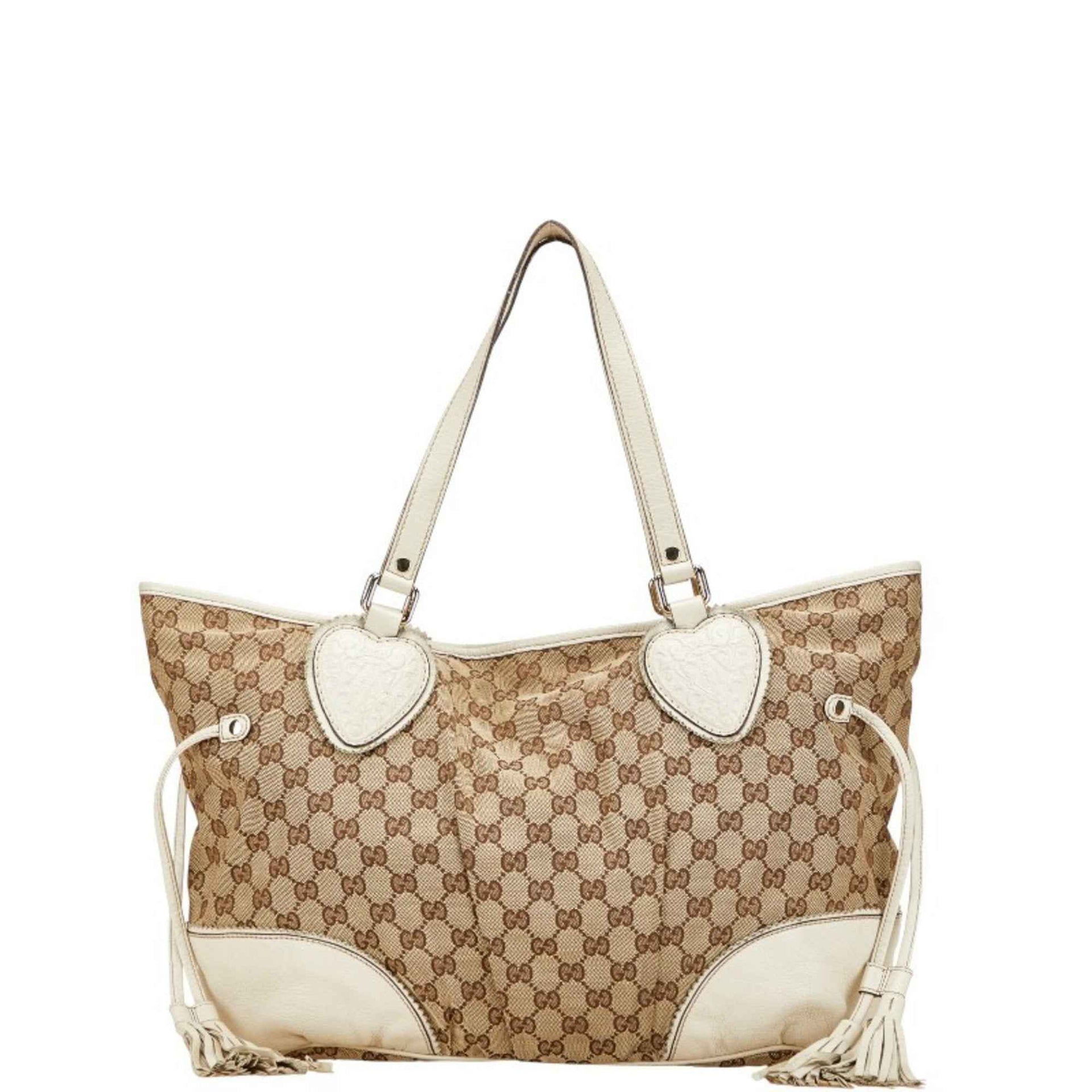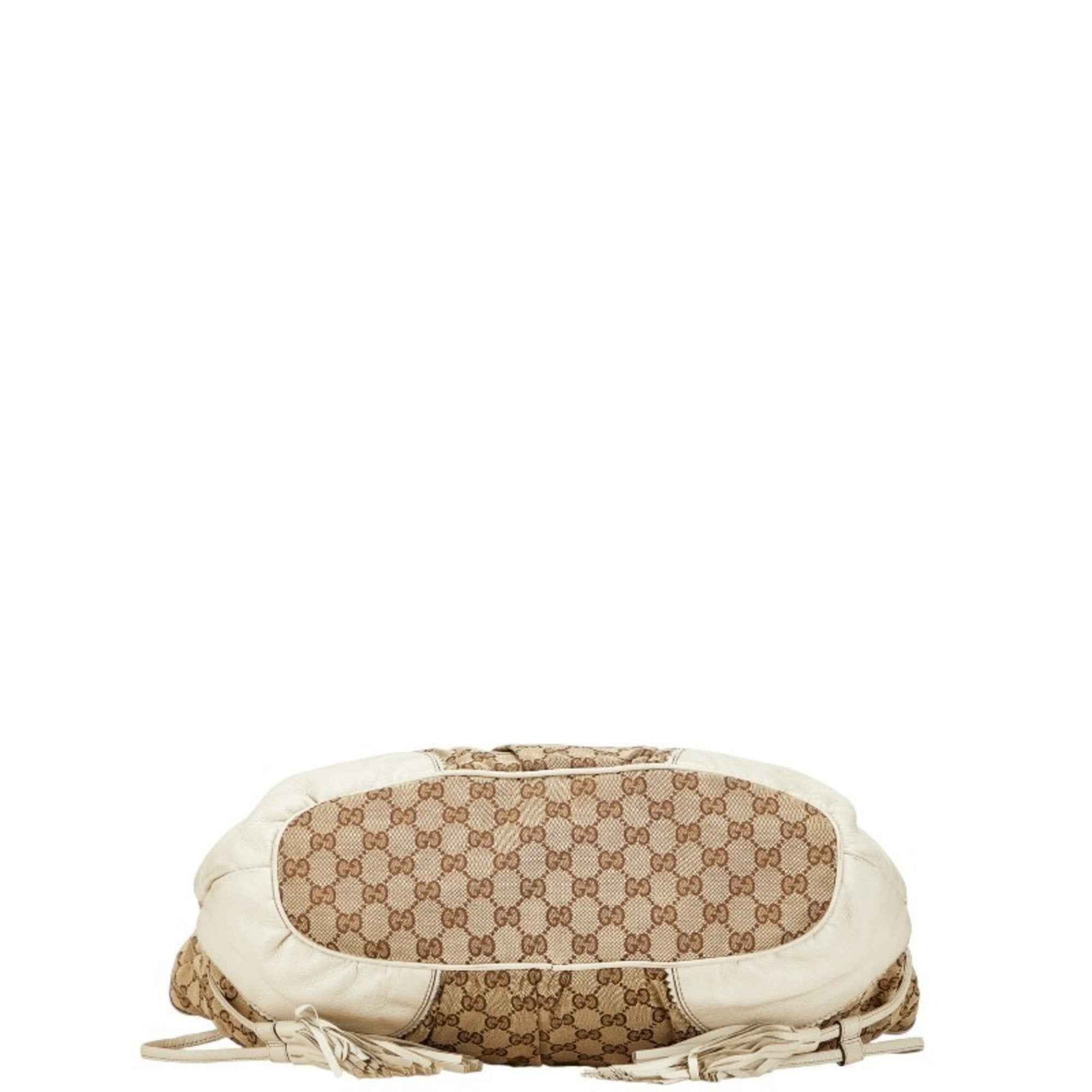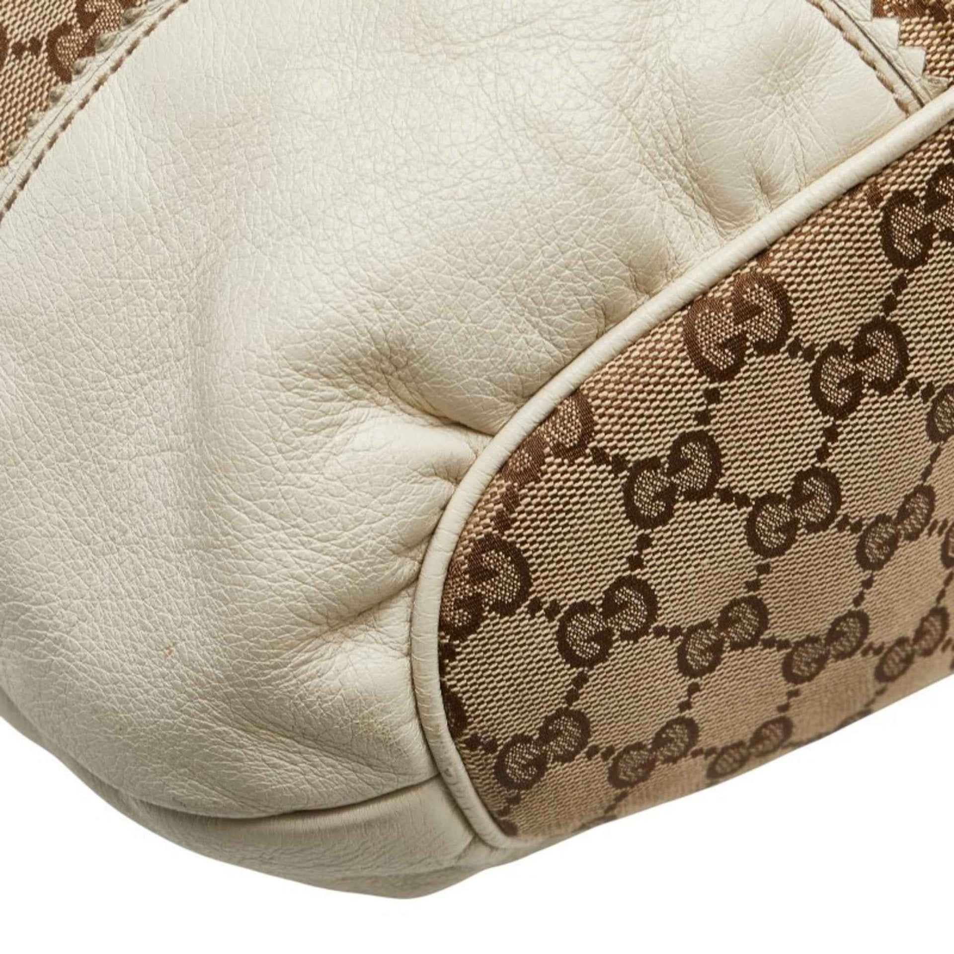 Gucci GG Canvas Tote Bag Shoulder 211954 Beige White Leather Women\'s GUCCI