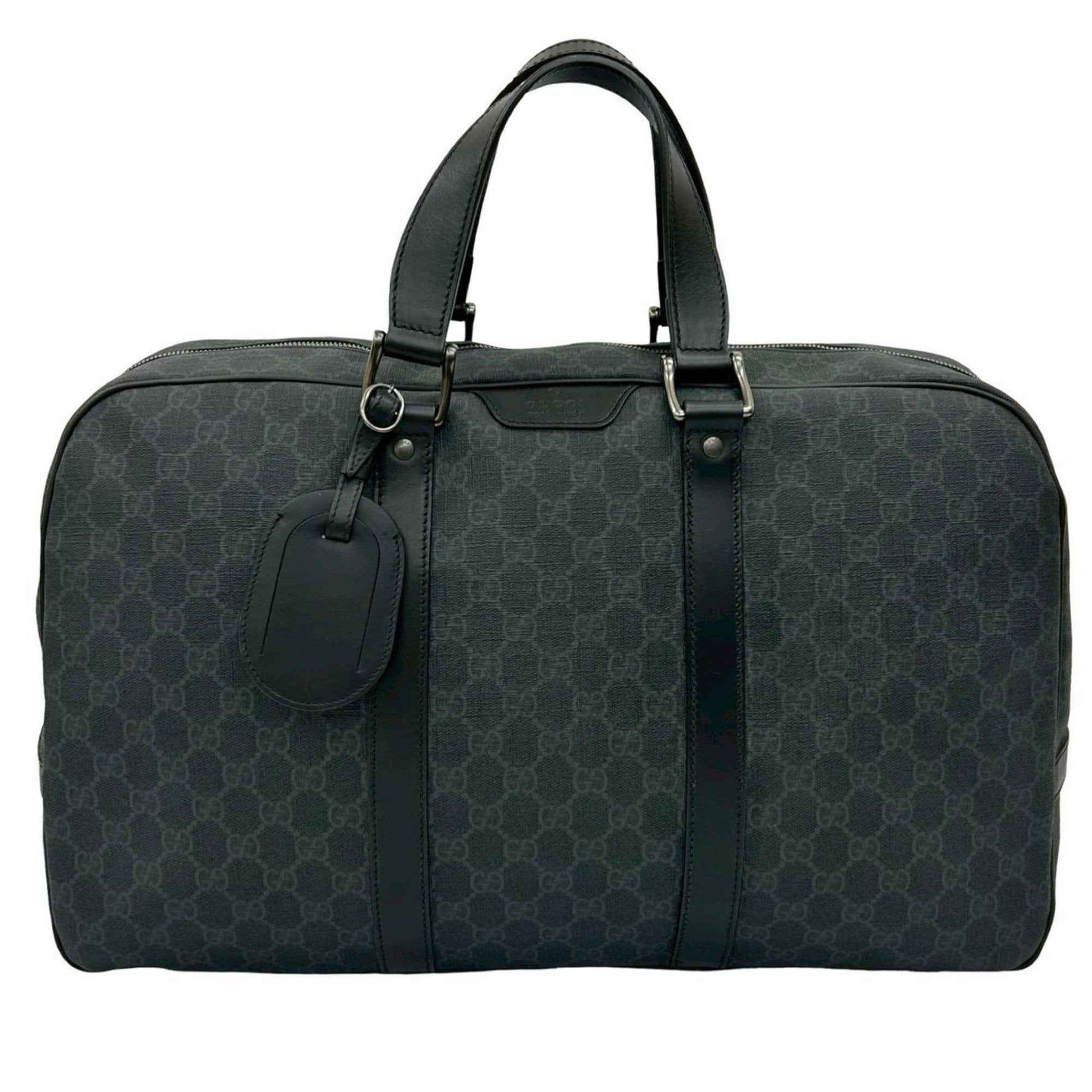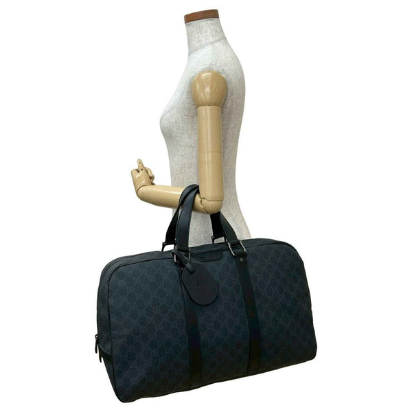 GUCCI GG Supreme logo-embossed leather Boston bag, handbag, or tote bag in black (11103)