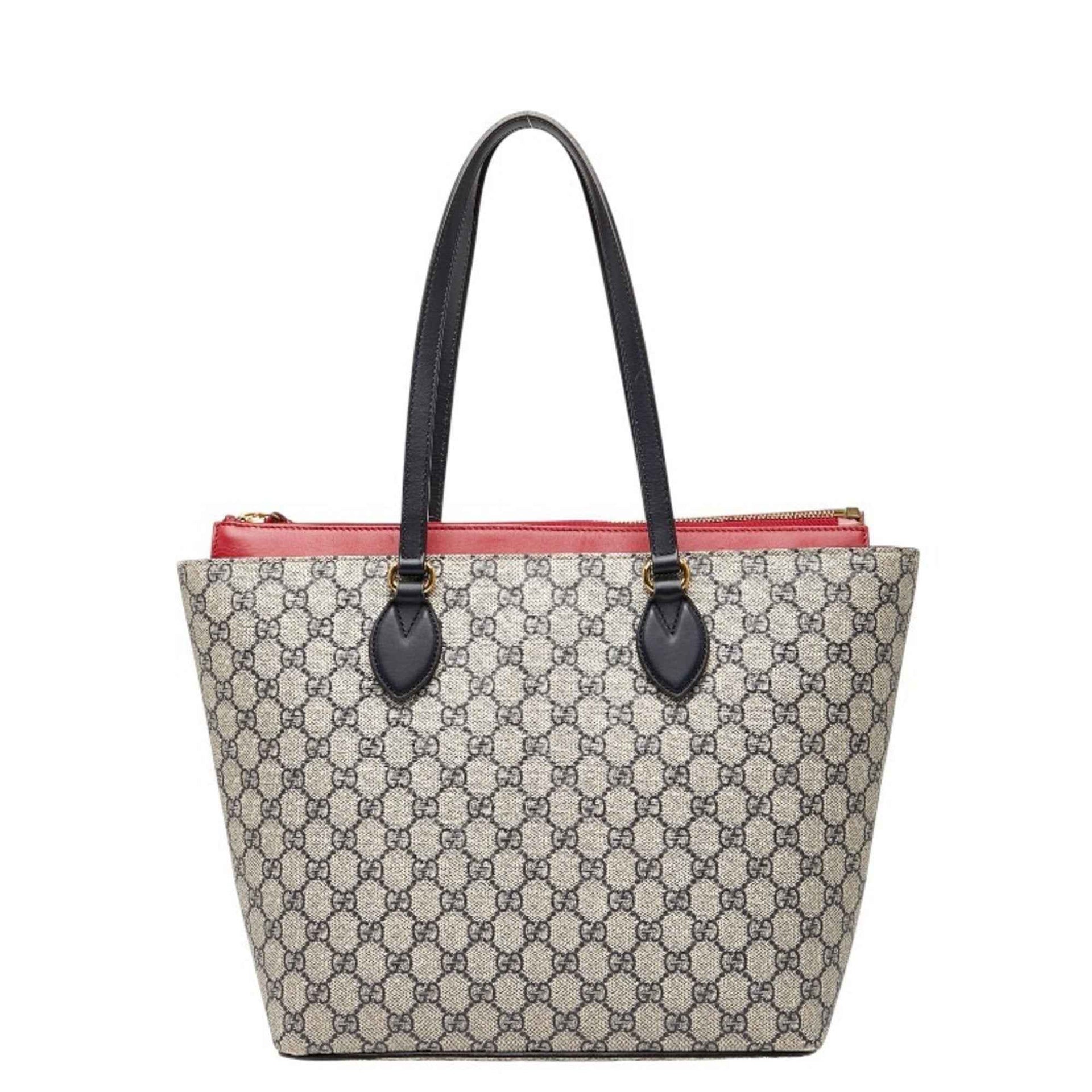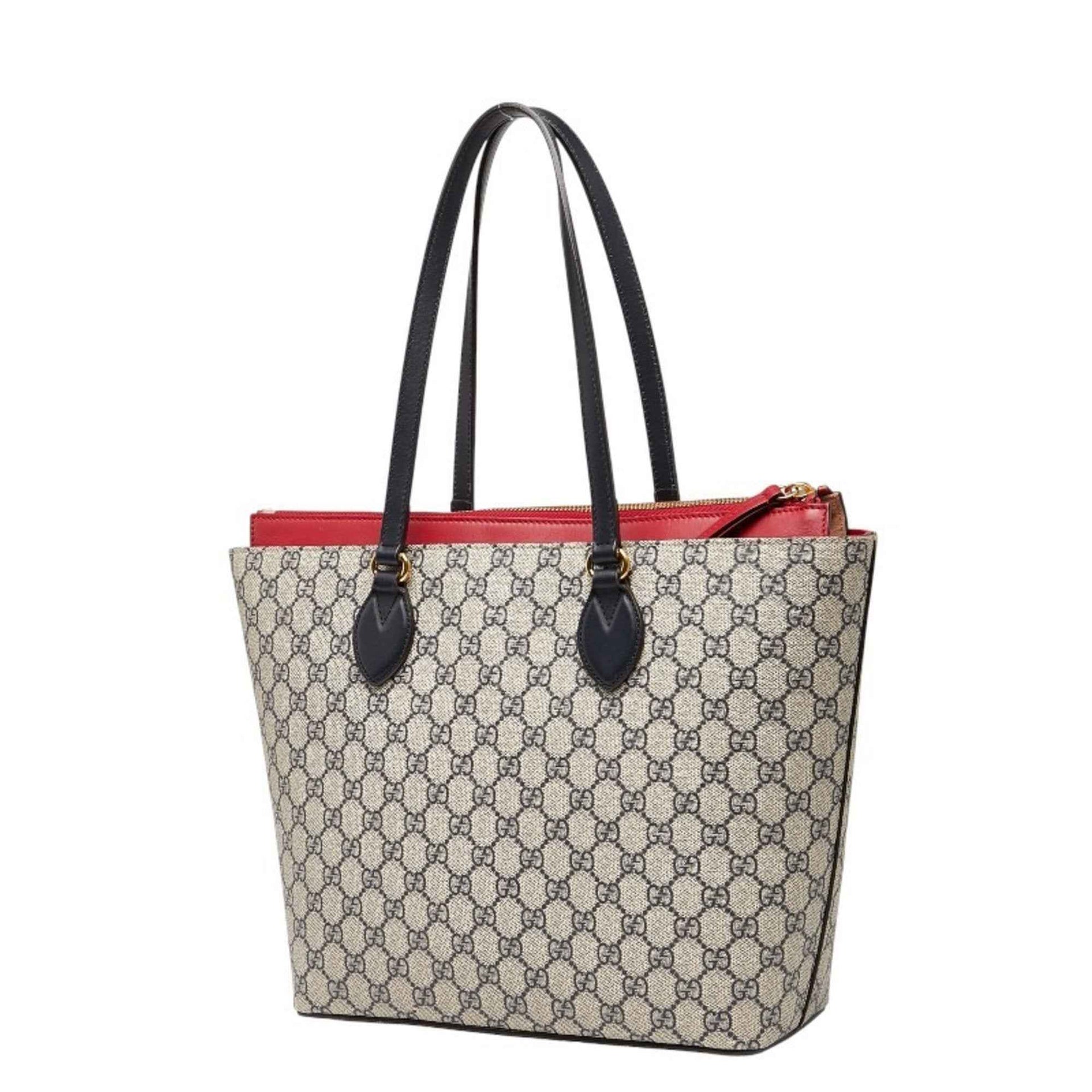 Gucci GG Supreme Tote Bag Handbag 415721 Beige Red Navy Leather Women\'s GUCCI
