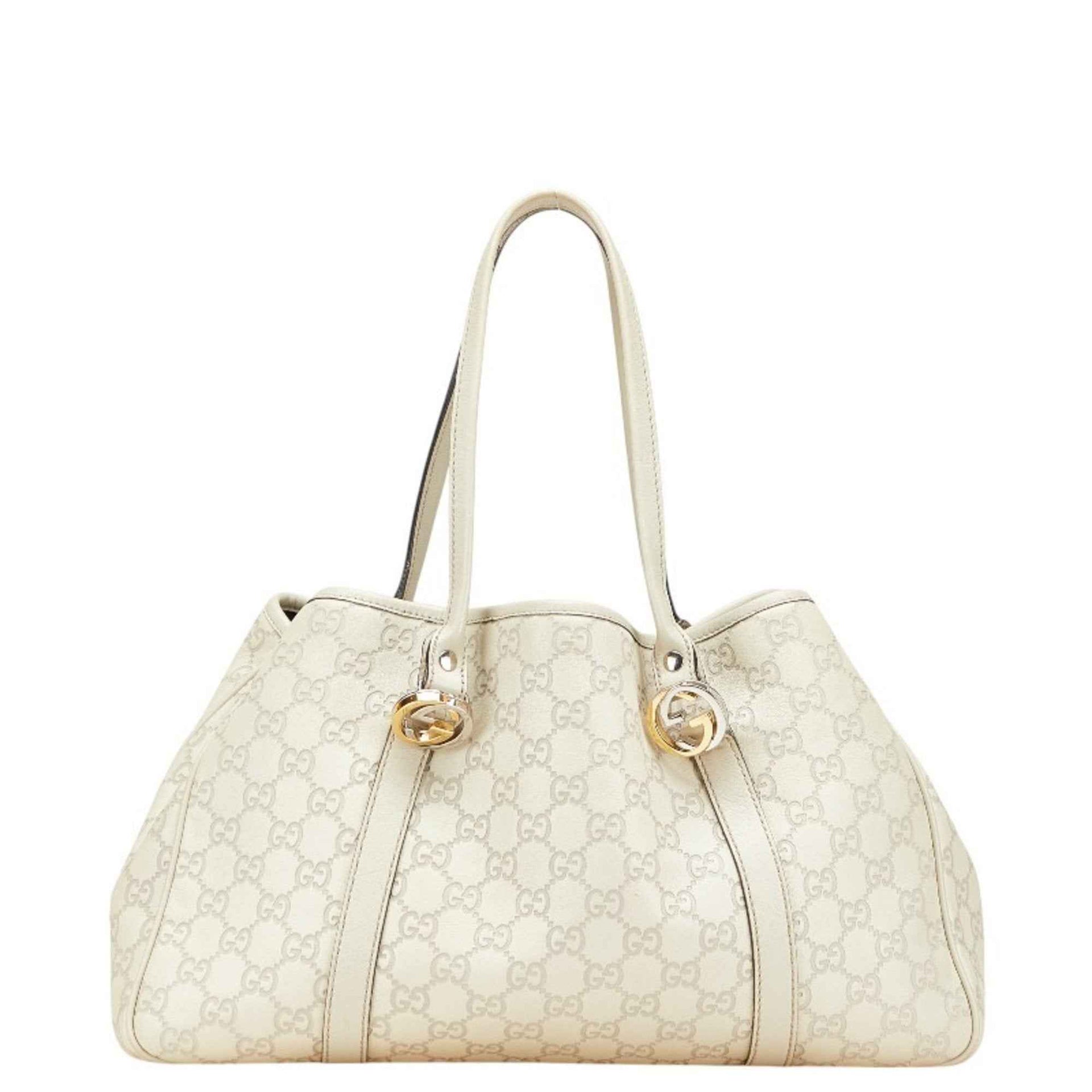 Gucci Guccissima GG Twins Tote Bag Shoulder 232957 Ivory Gray Leather Women\'s GUCCI
