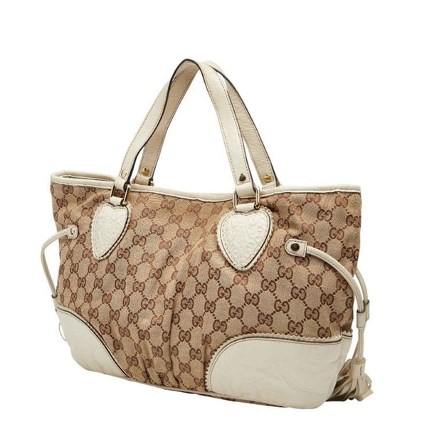 Gucci Heart Tassel GG Canvas Handbag Tote Bag 211955 Beige White Leather Women\'s GUCCI