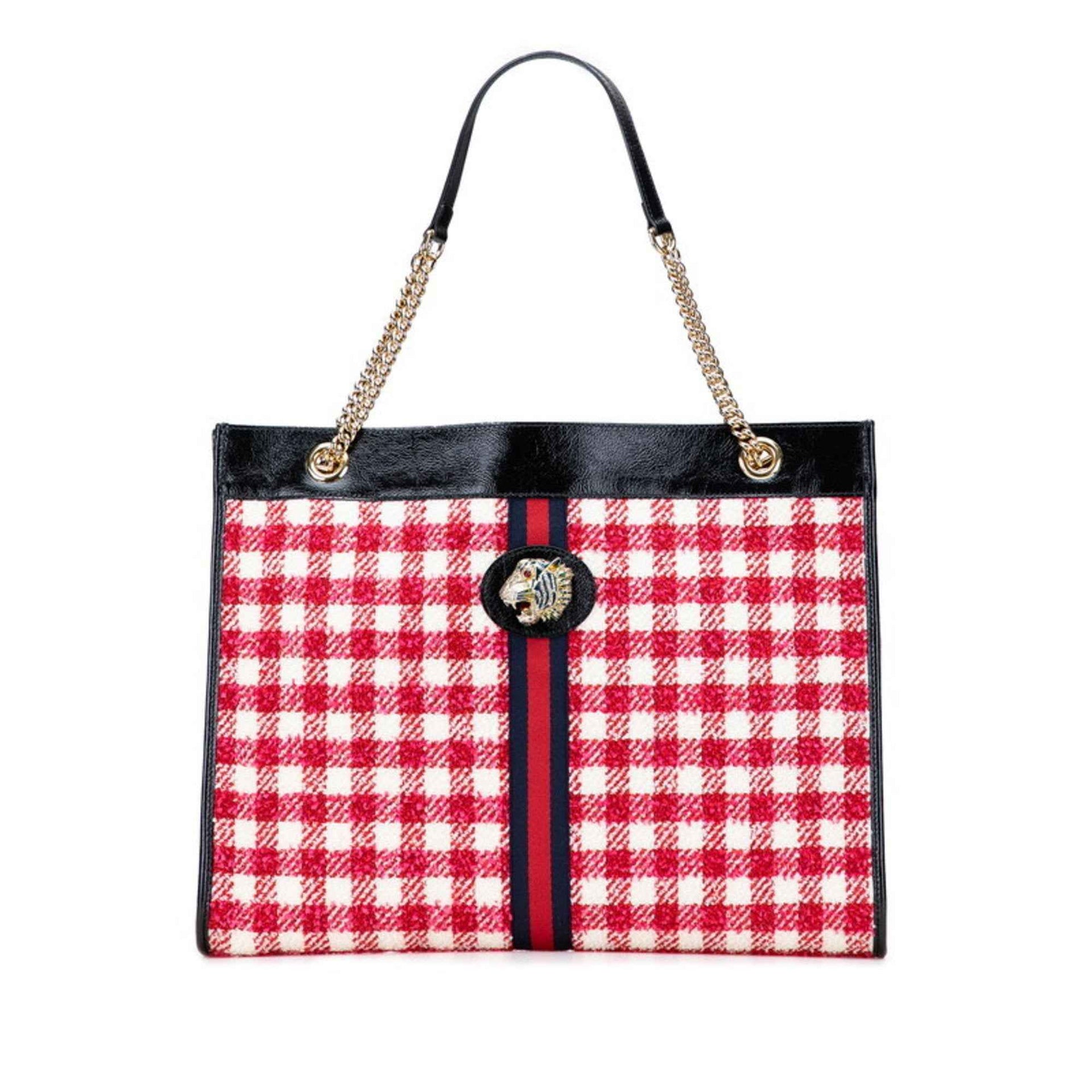 Gucci Sherry Line Daiger Head Rajah Chain Tote Bag/Shoulder Bag 537219 in Red, Ivory, and Black Tweed Leather. Women\'s.