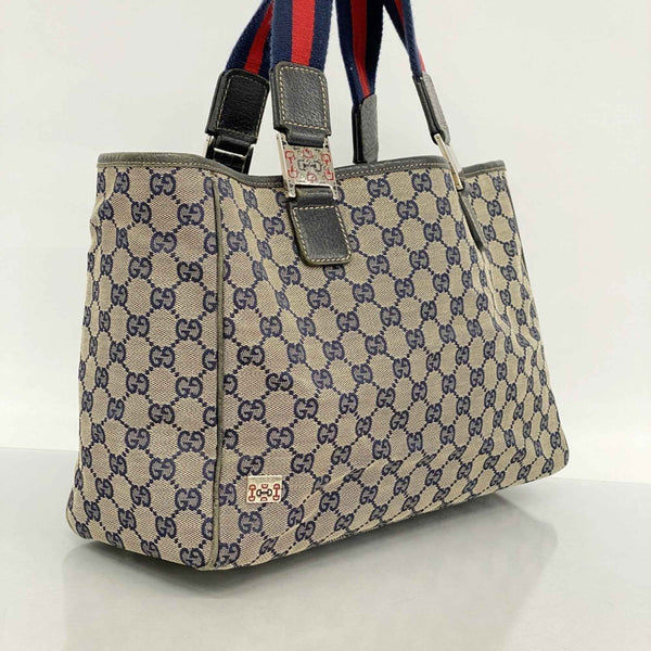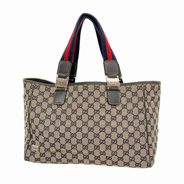 Gucci Tote Bag GG Canvas Sherry Line 145758 Beige Navy Red Women\'s