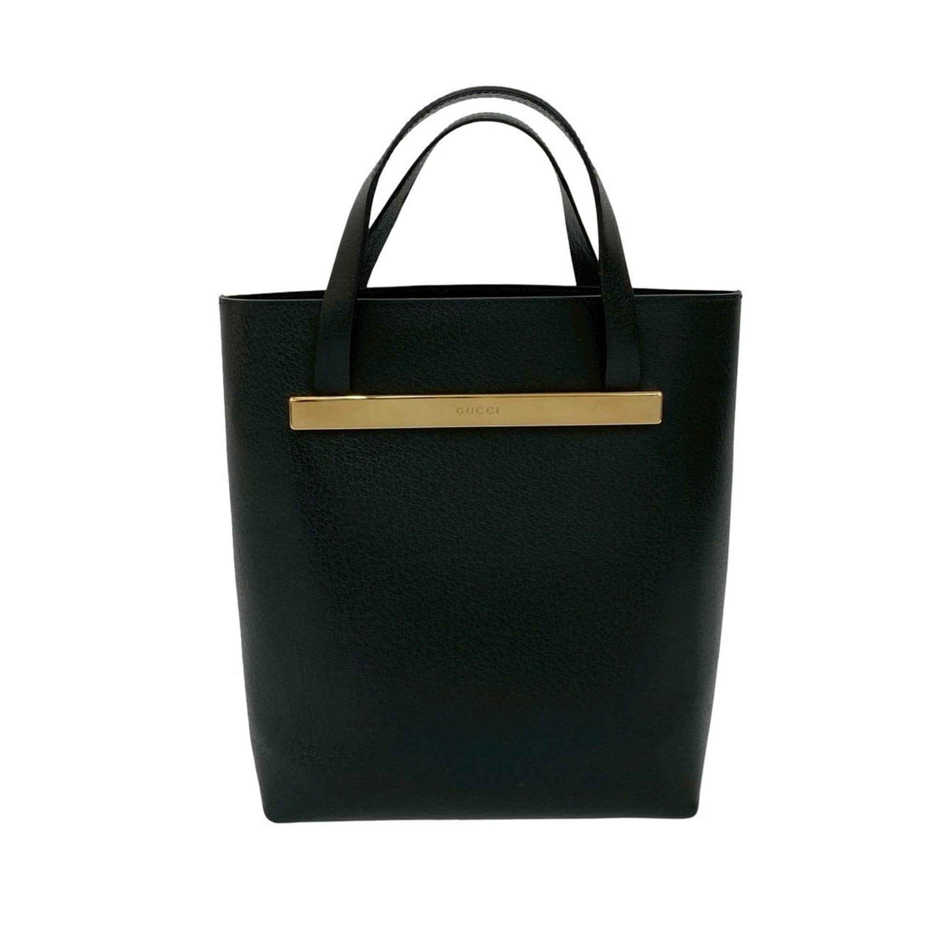 GUCCI Vintage Gucci Logo Hardware Calf Leather Handbag Mini Tote Bag Black 01822
