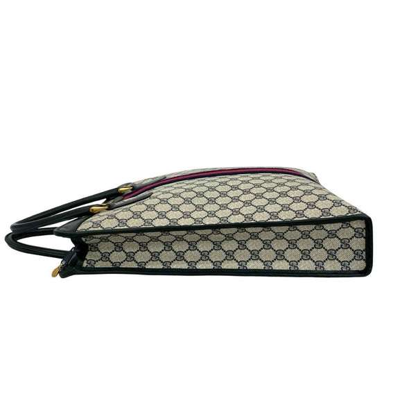 GUCCI Vintage Sherry Line GG Logo Hardware Leather Handbag Tote Bag Navy 222-3