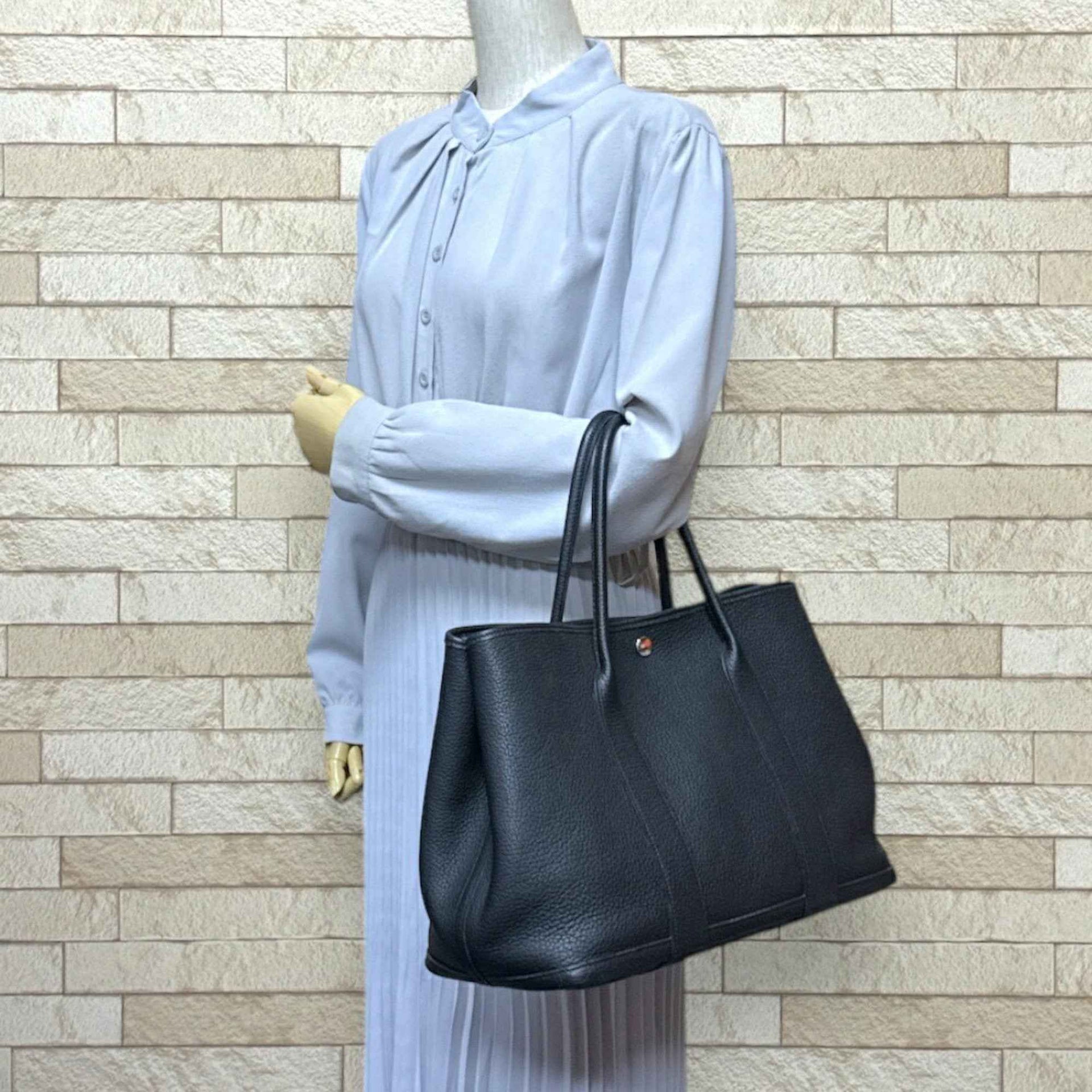 Hermes Garden PM Tote Bag, Negonda, Black, Women\'s, HERMES