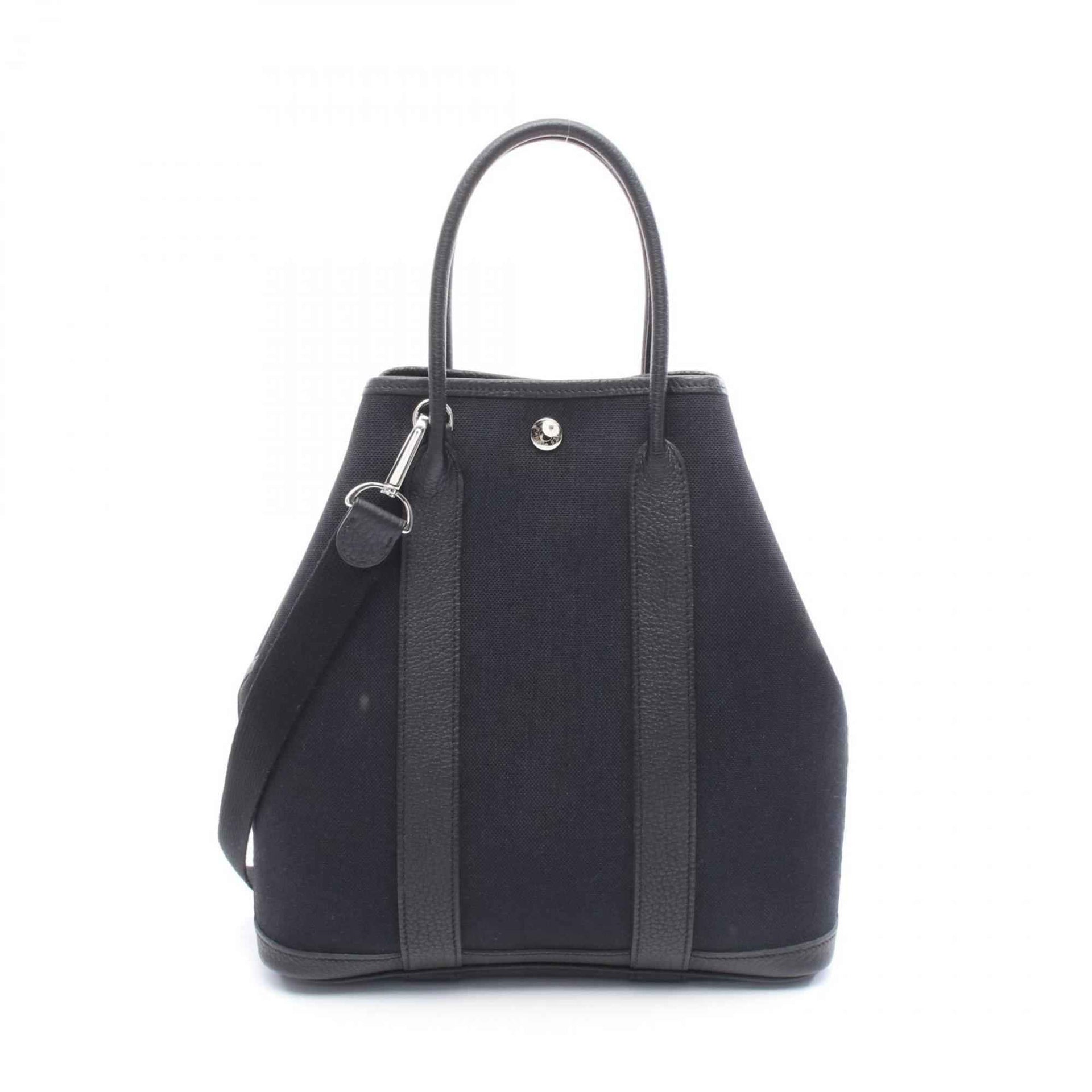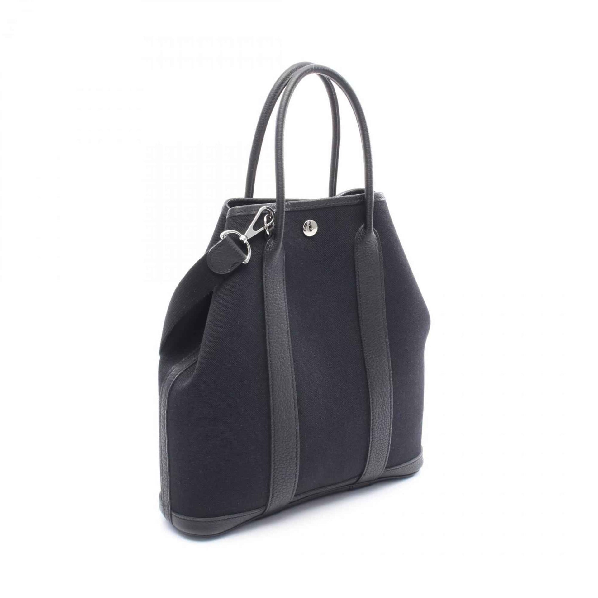 Hermes Hermès Garden File PM Tote Bag, Canvas and Leather, Toile Militaire Negonda, Women\'s, Black