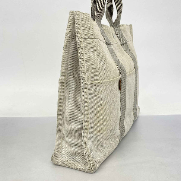 Hermes Hermès New Foule MM Tote Bag, Canvas, Gray, Men\'s and Women\'s