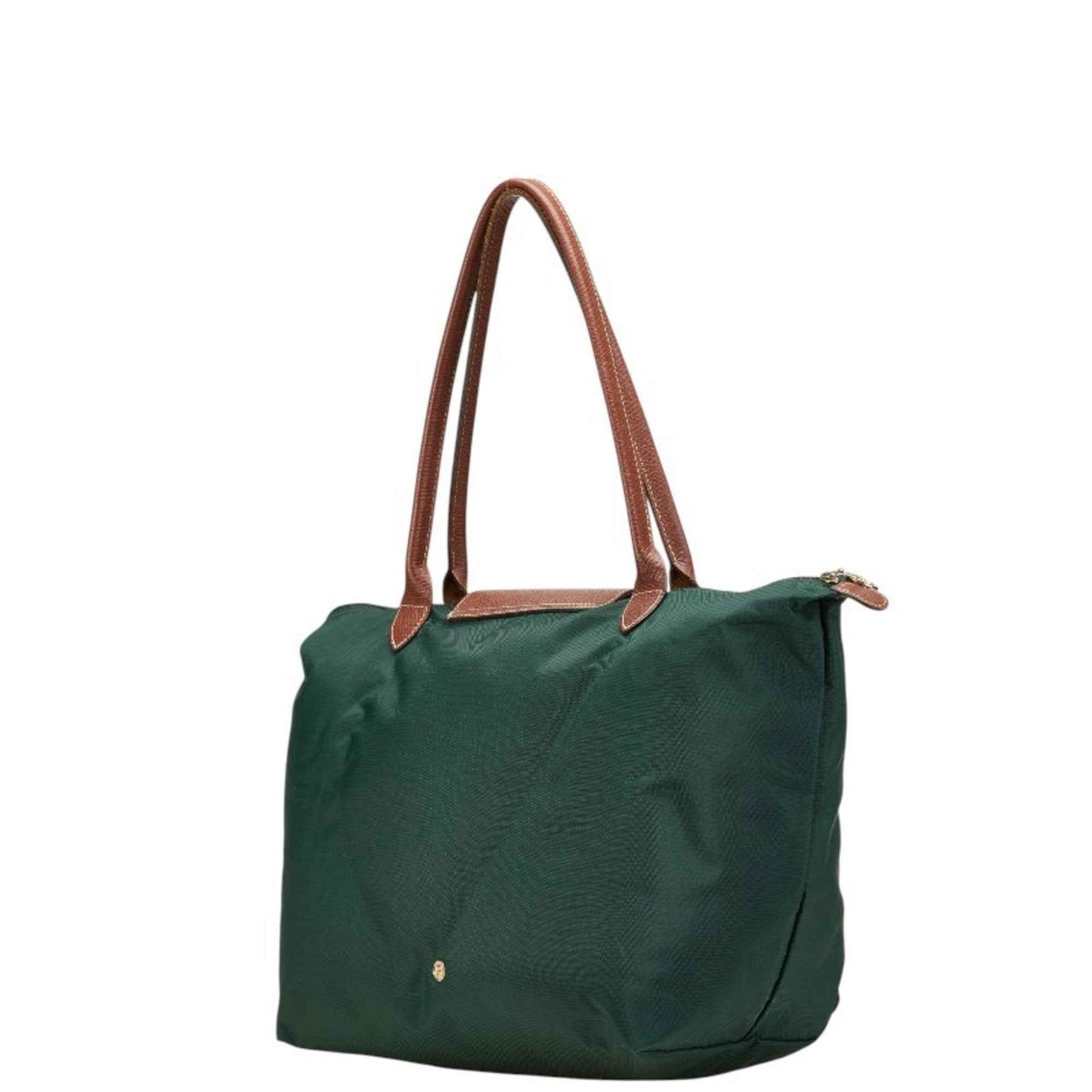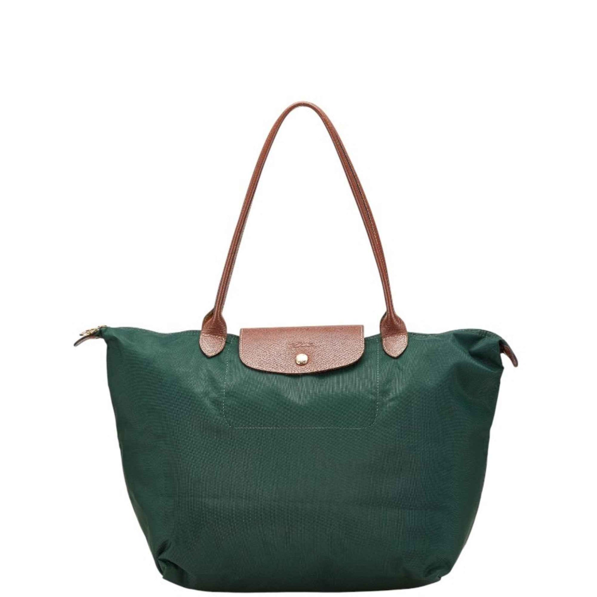 Longchamp Le Pliage L Tote Bag Shoulder Green Brown Nylon Leather Women\'s