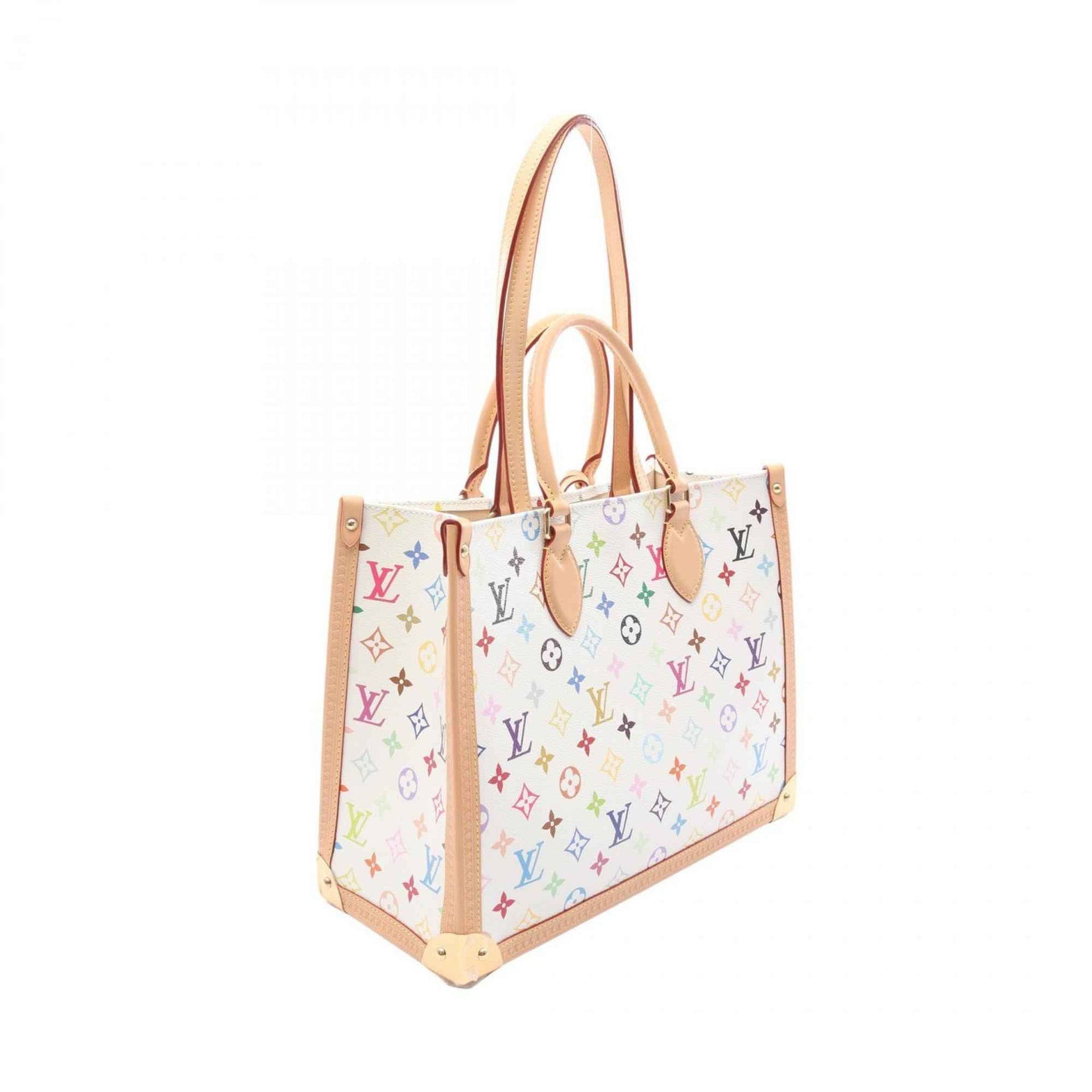 Louis Vuitton LOUIS VUITTON x Takashi Murakami On the Go Trunk MM Tote Bag, Coated Canvas and Leather, Monogram Multicolore, Women\'s, White, M13079