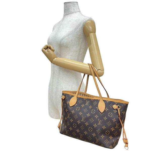 LOUIS VUITTON Neverfull PM Monogram Leather Tote Bag, Brown, 91203