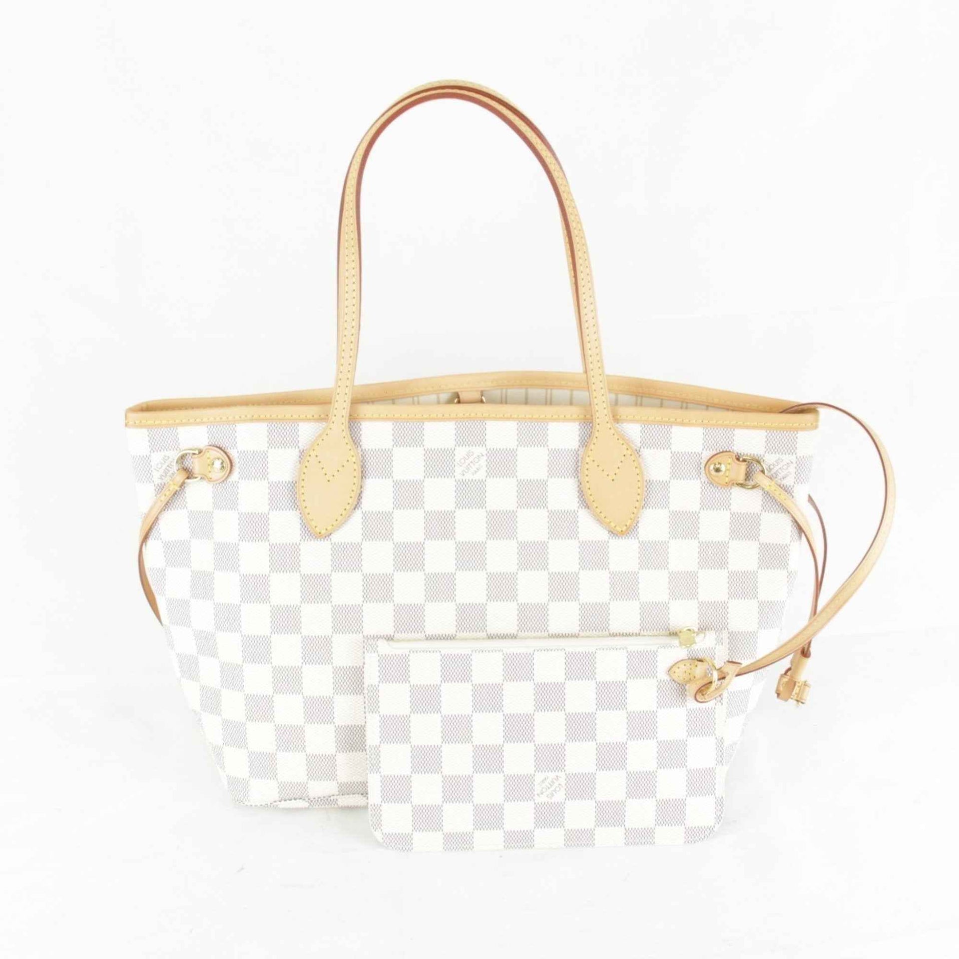 LOUIS VUITTON Neverfull PM Tote Bag in Damier Azur Canvas (N41362/AR2185) with Pouch and Bag, Women\'s