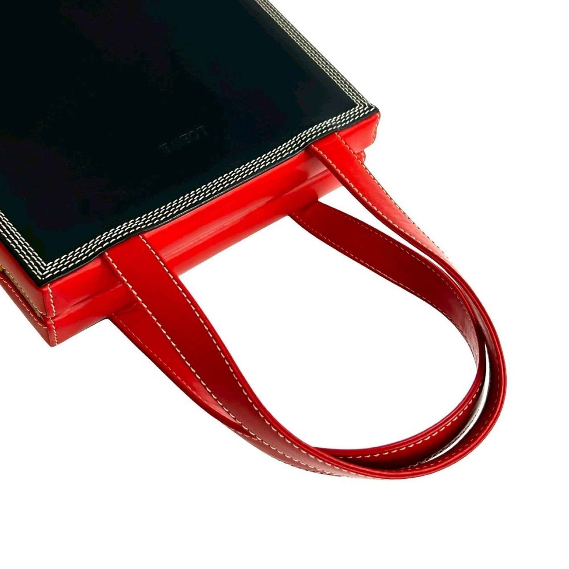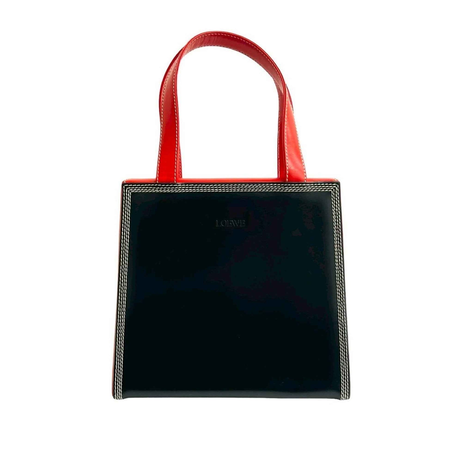 Nearly unused LOEWE vintage logo-embossed calf leather handbag/mini tote bag in navy and red (20741)