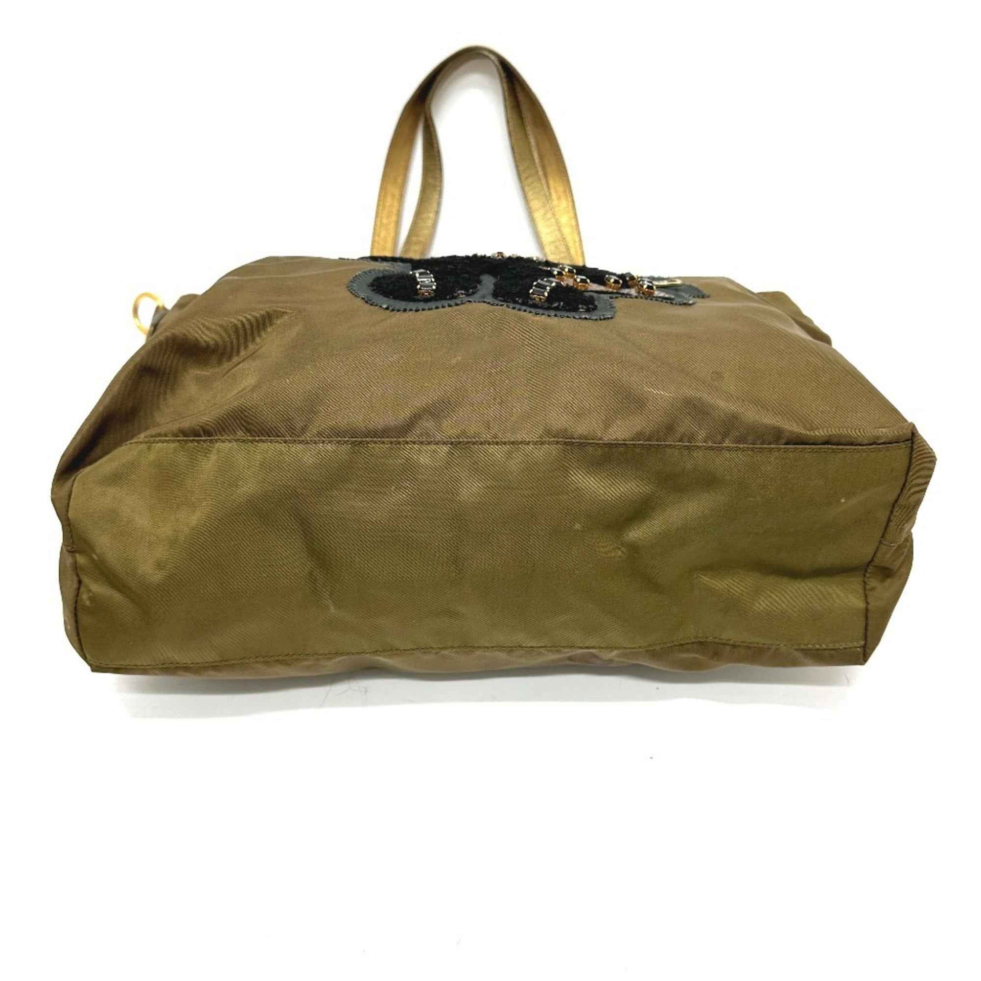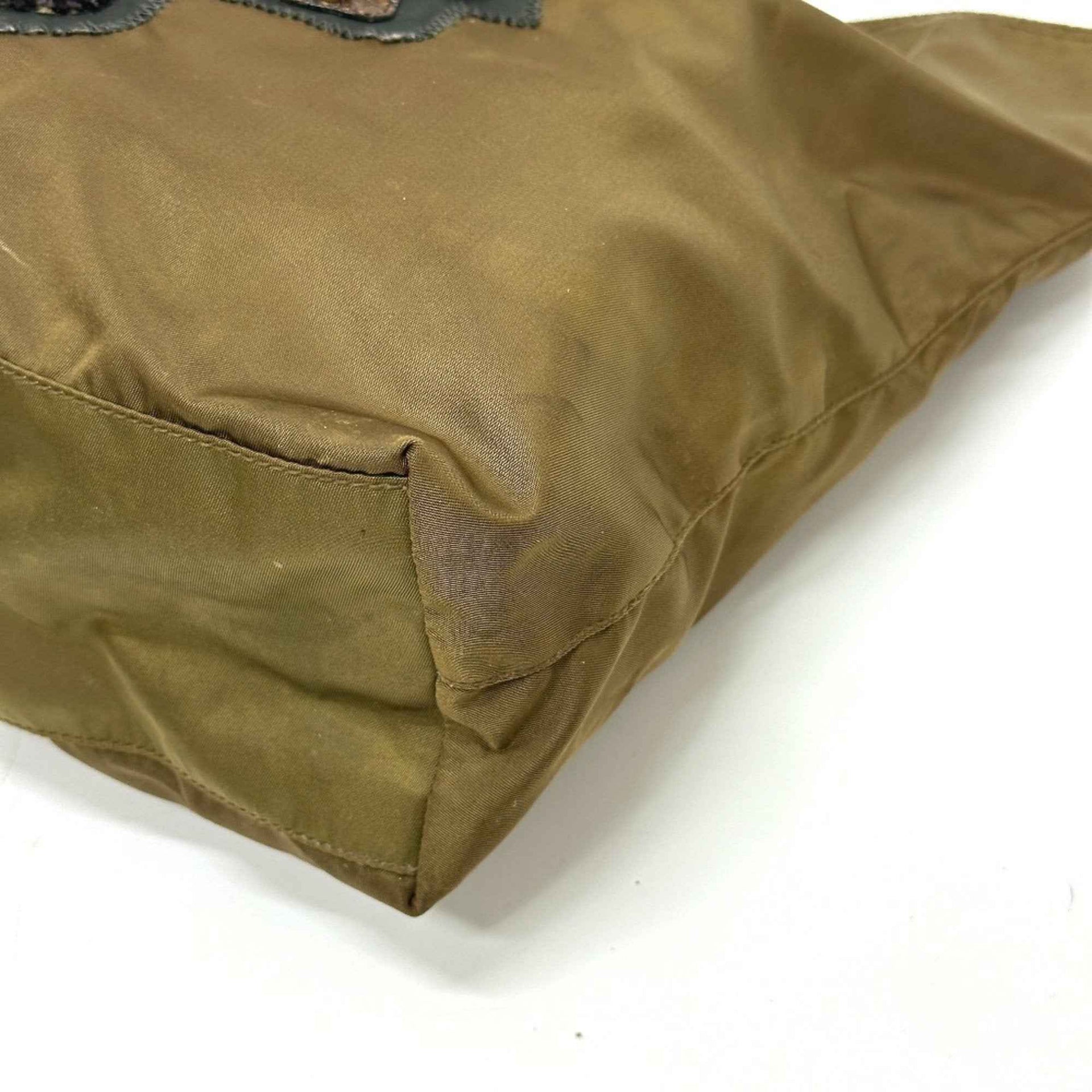 PRADA Bear Stone Tote Bag, Nylon and Leather, Women\'s, Brown