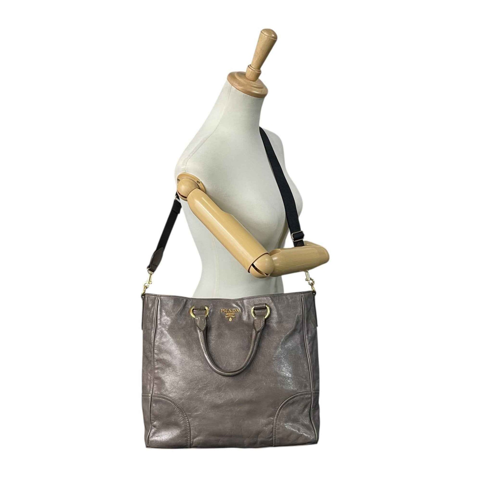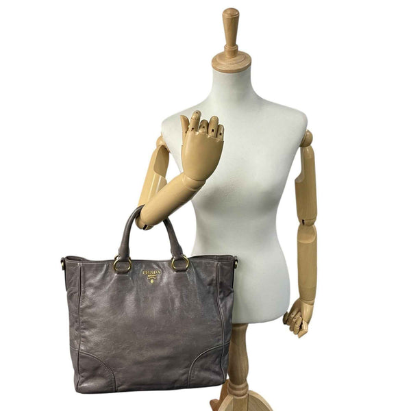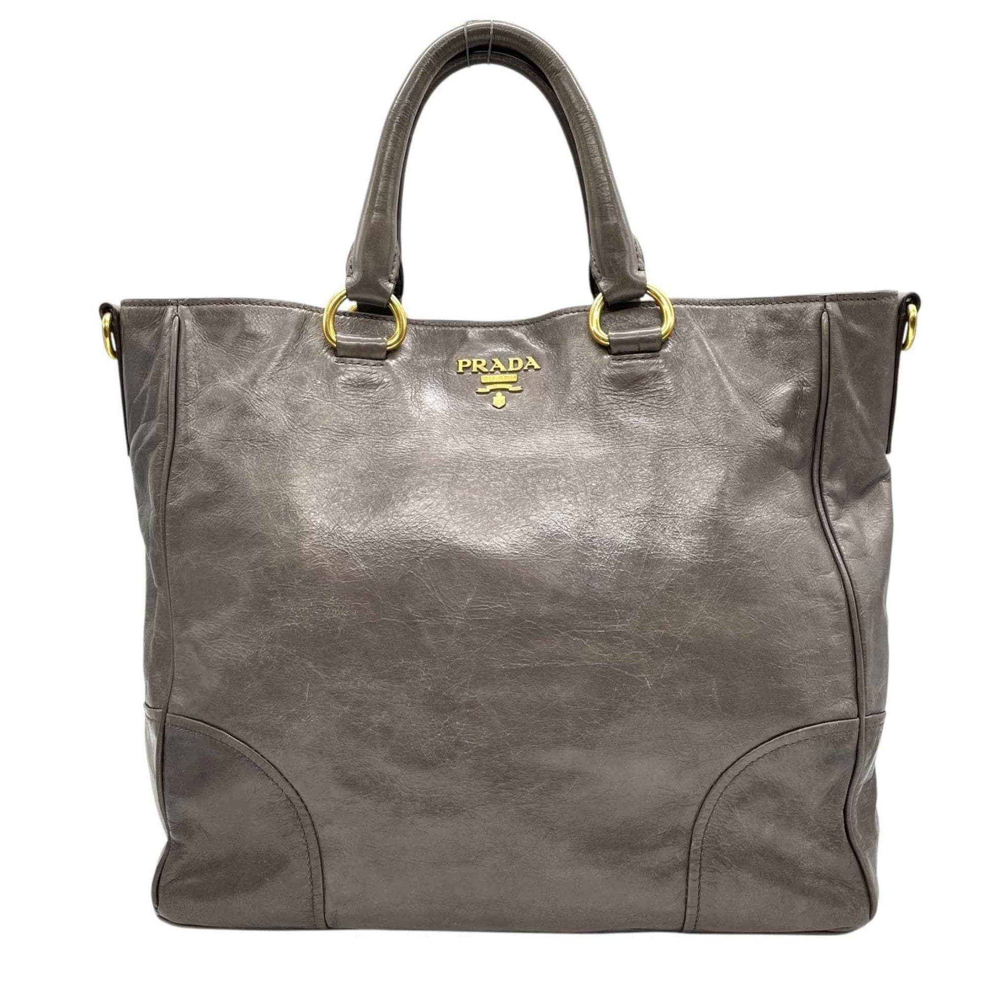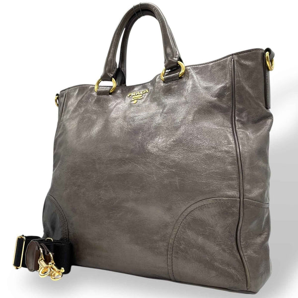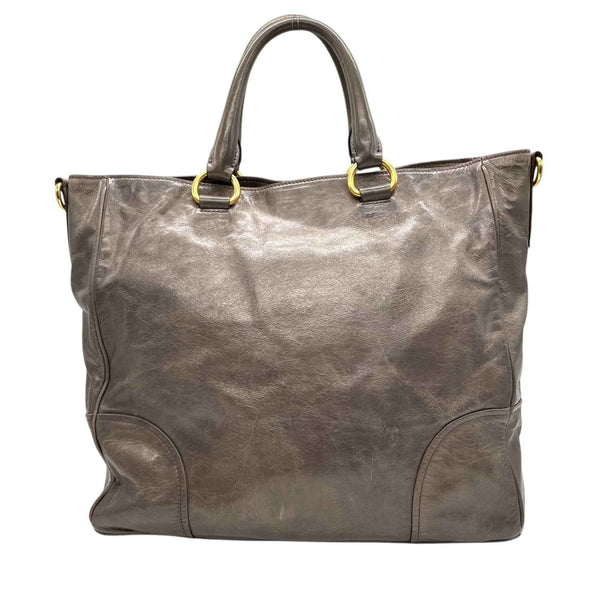 Prada K3 Tote Bag Shoulder Gray Leather Gold Hardware 2-Way