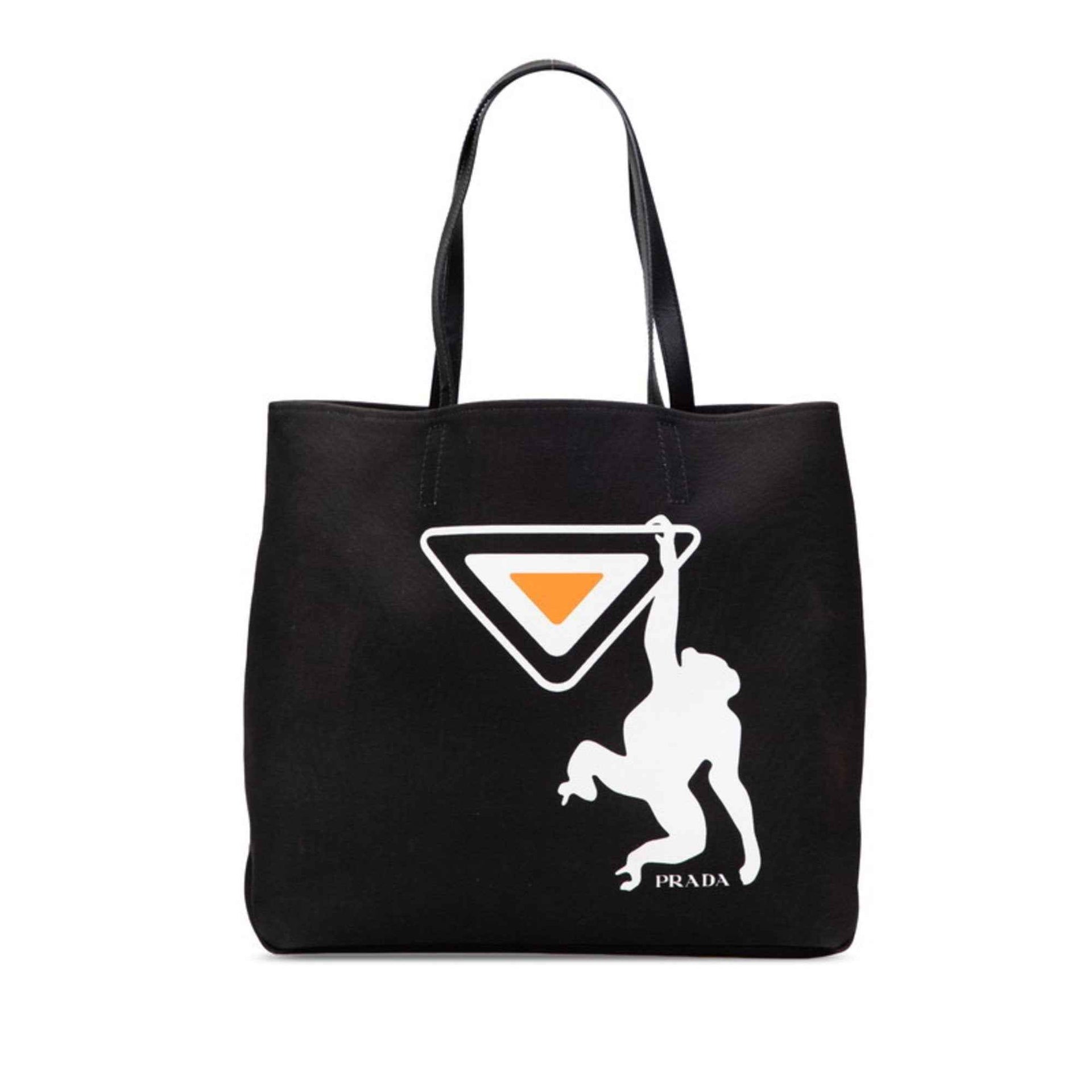 Prada Monkey Tote Bag in Black, White, and Orange Canvas Leather for Women