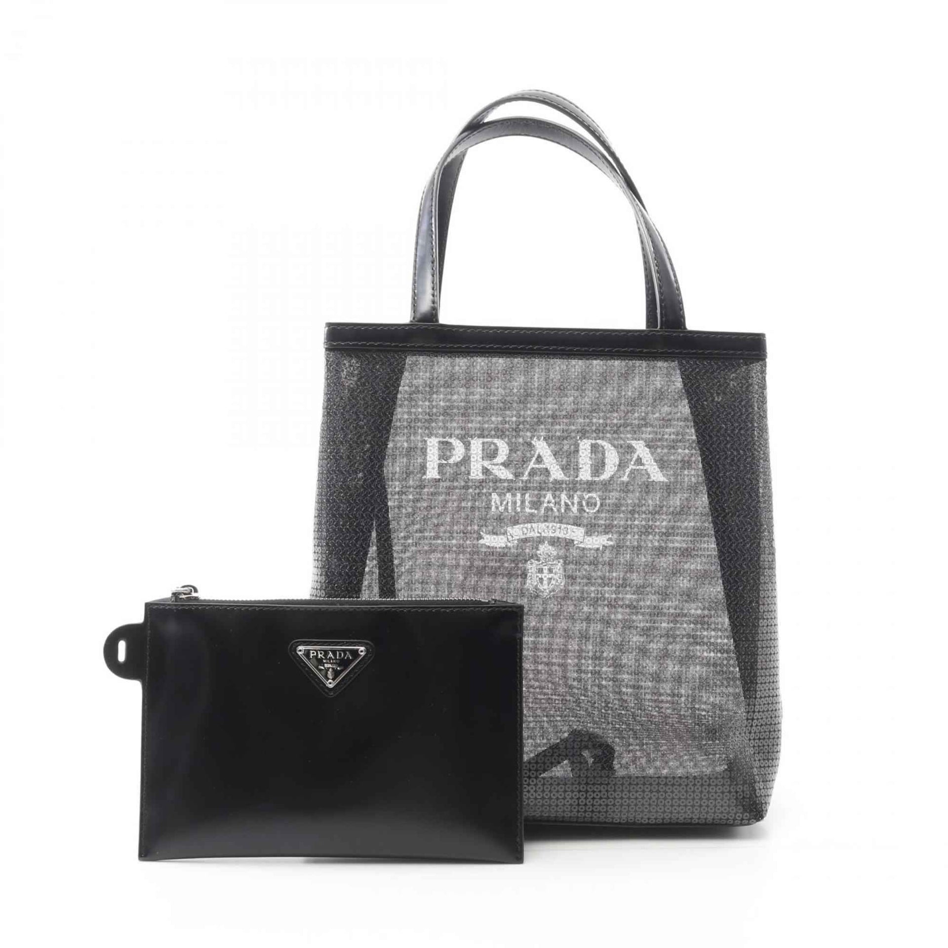Prada PRADA RETE PAILLETTES Tote Bag, Patent Leather and Mesh, Women\'s, Black, 1BG417