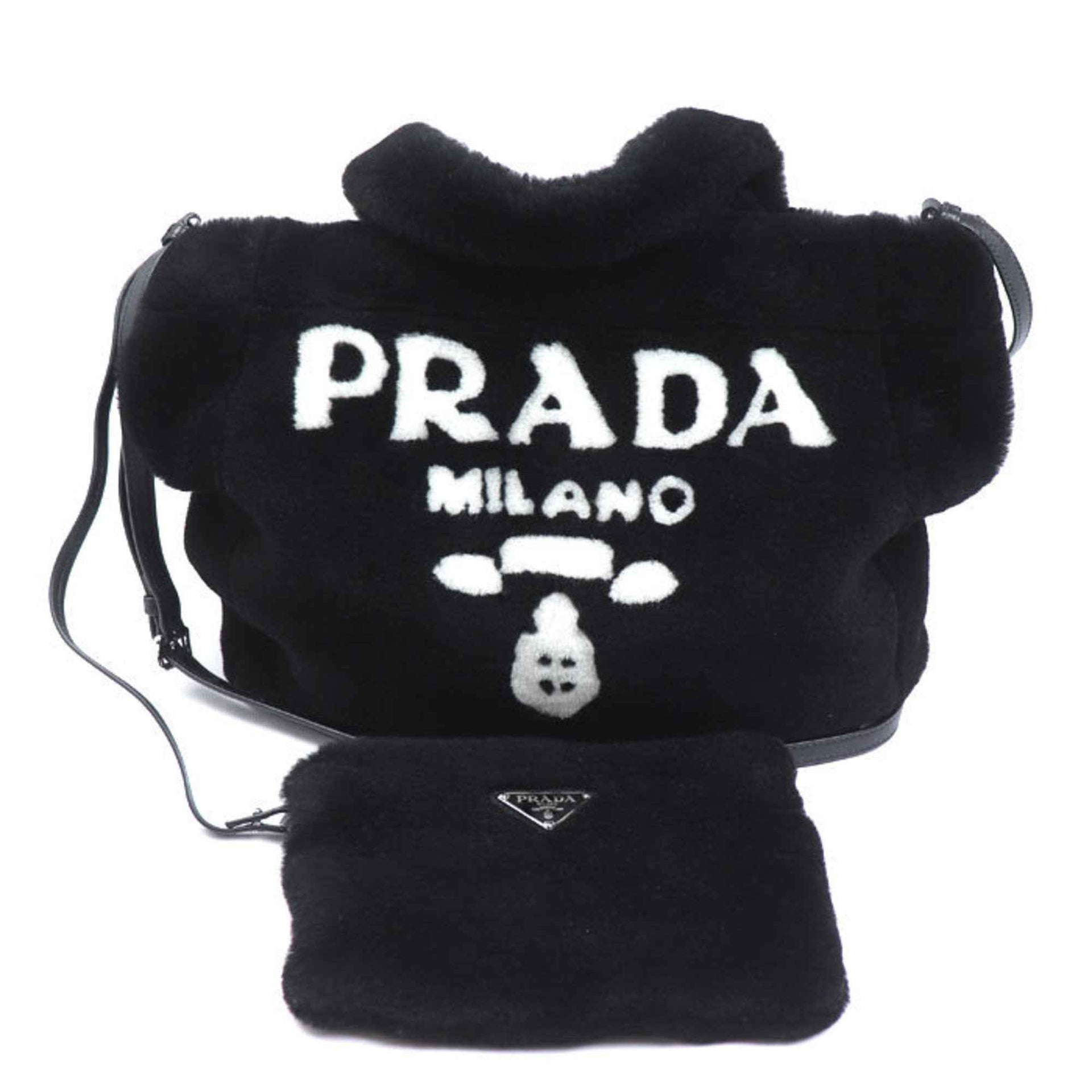 PRADA Prada Shearling Fur Tote Bag, Black and White, 1BG374 2EC9 F0967, Women\'s