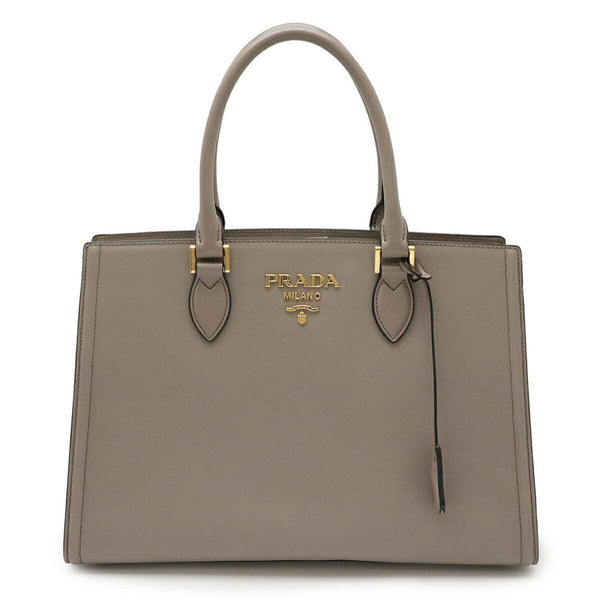 PRADA SAFFIANO Handbag Tote Bag Leather ARGILLA Greige 1BA228