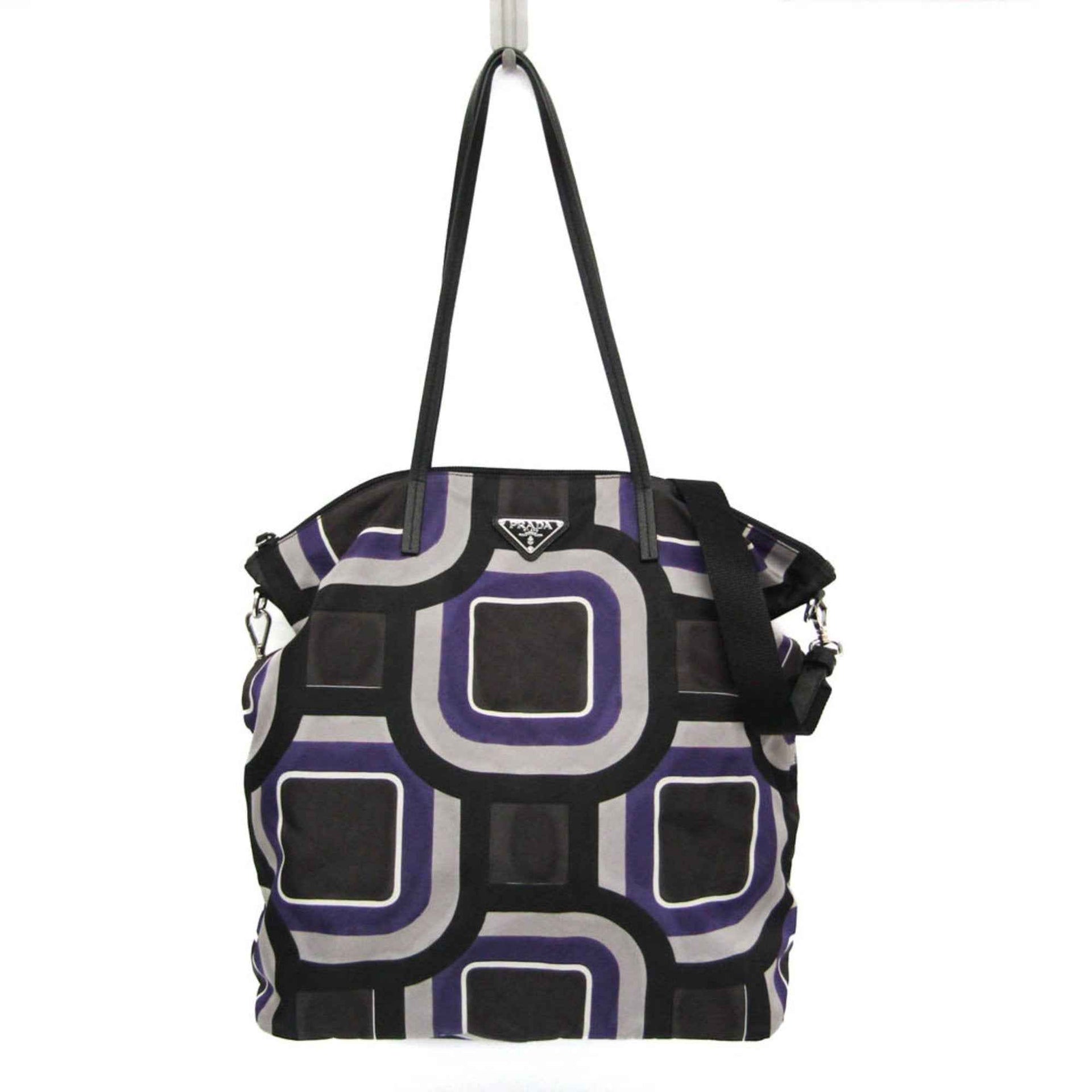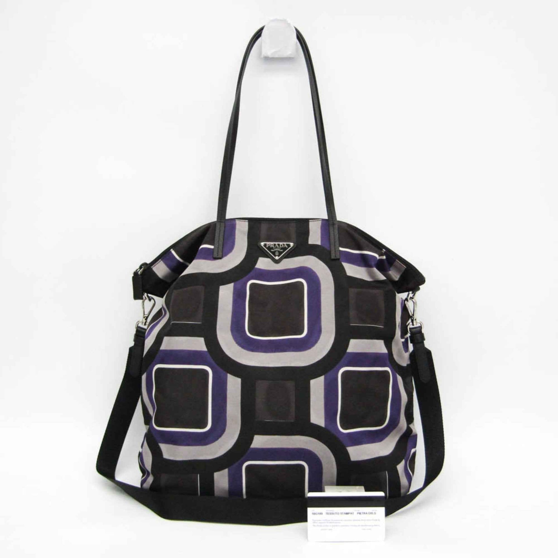 Prada TESSUTO STAMPAT 1BG189 Women\'s Nylon,Leather Shoulder Bag,Tote Bag Black,Purple