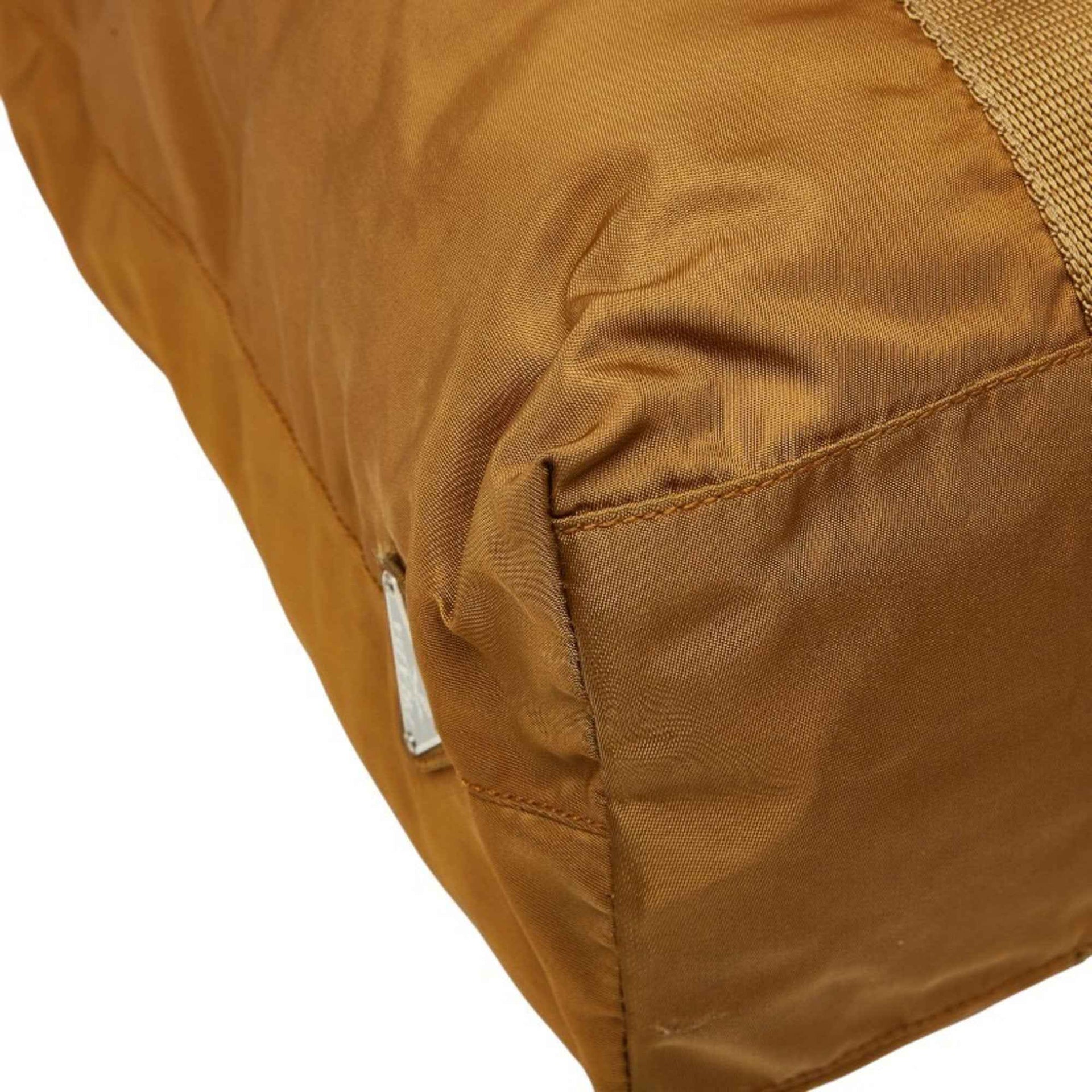 Prada Triangle Logo Plate Tote Bag Shoulder Brown Nylon Leather Women\'s PRADA