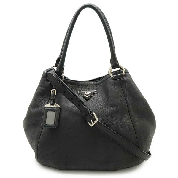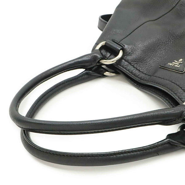 PRADA Triangle Tote Bag/Shoulder Bag in Black Leather (Nero) - Purchased at an Overseas Boutique (B2343R)
