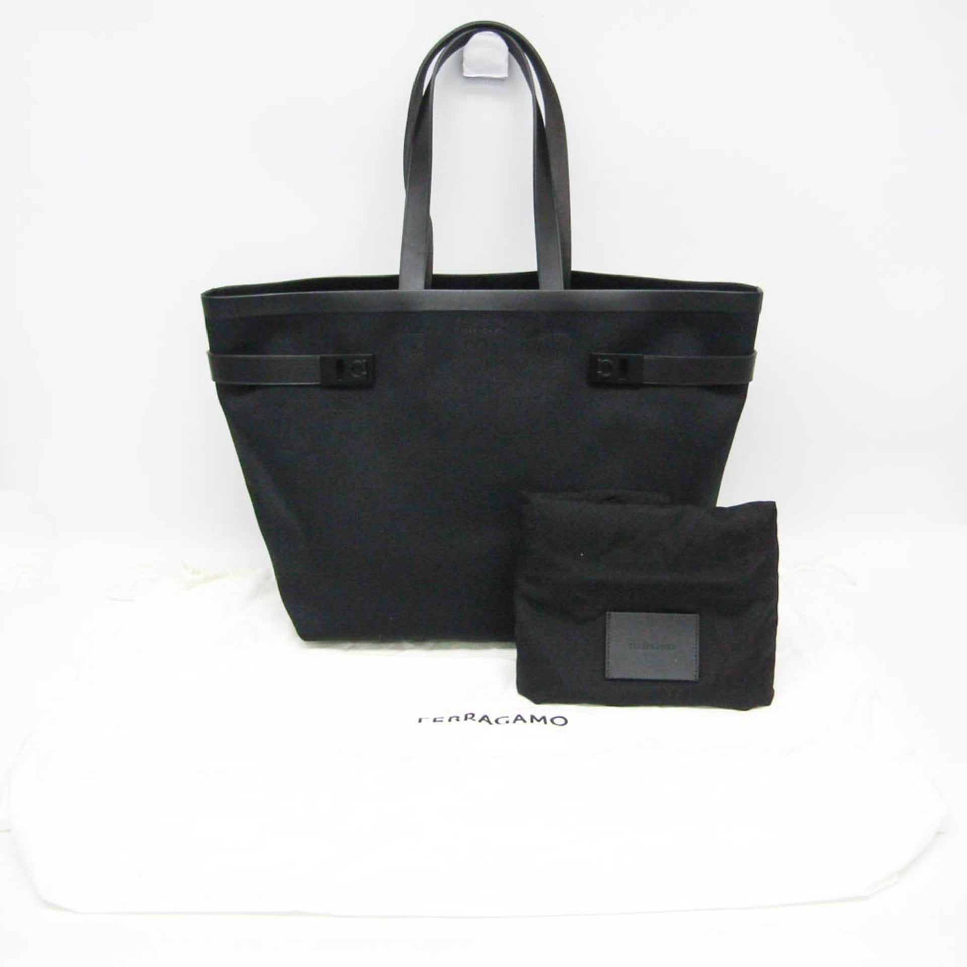 Salvatore Ferragamo Gancini Big Tote EE-24 1295 Men\'s Canvas,Leather Tote Bag Black