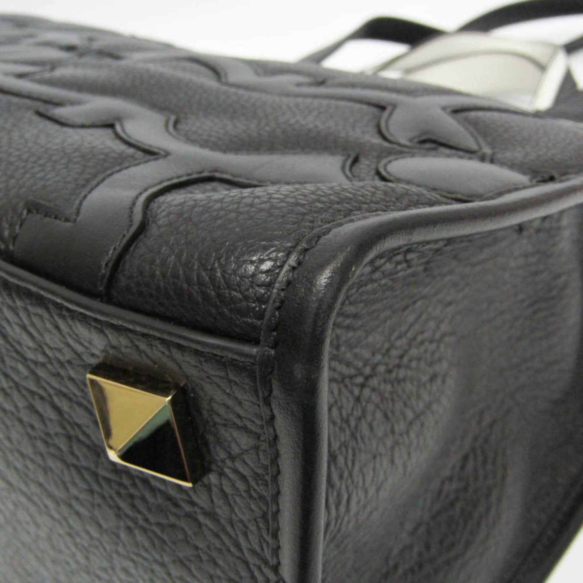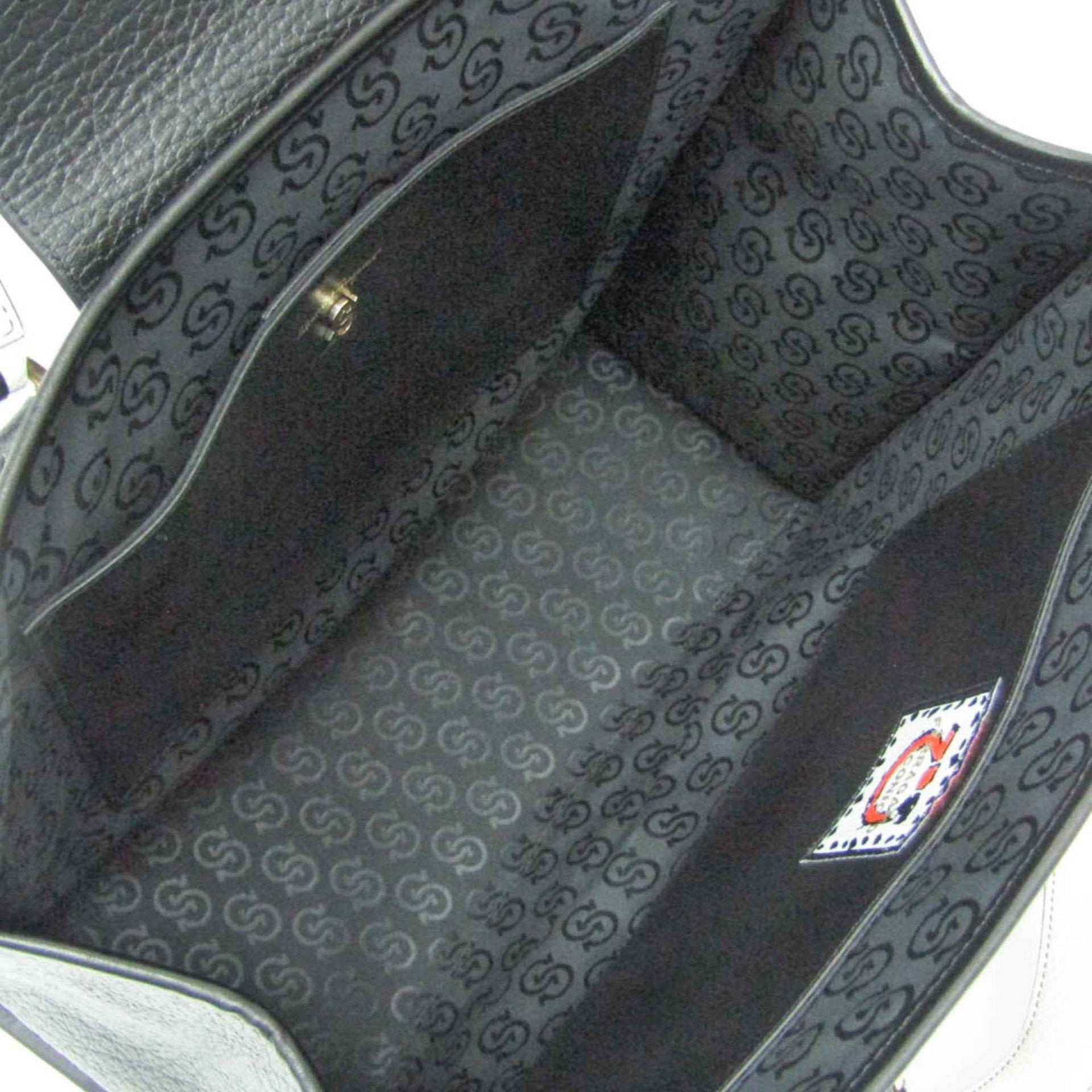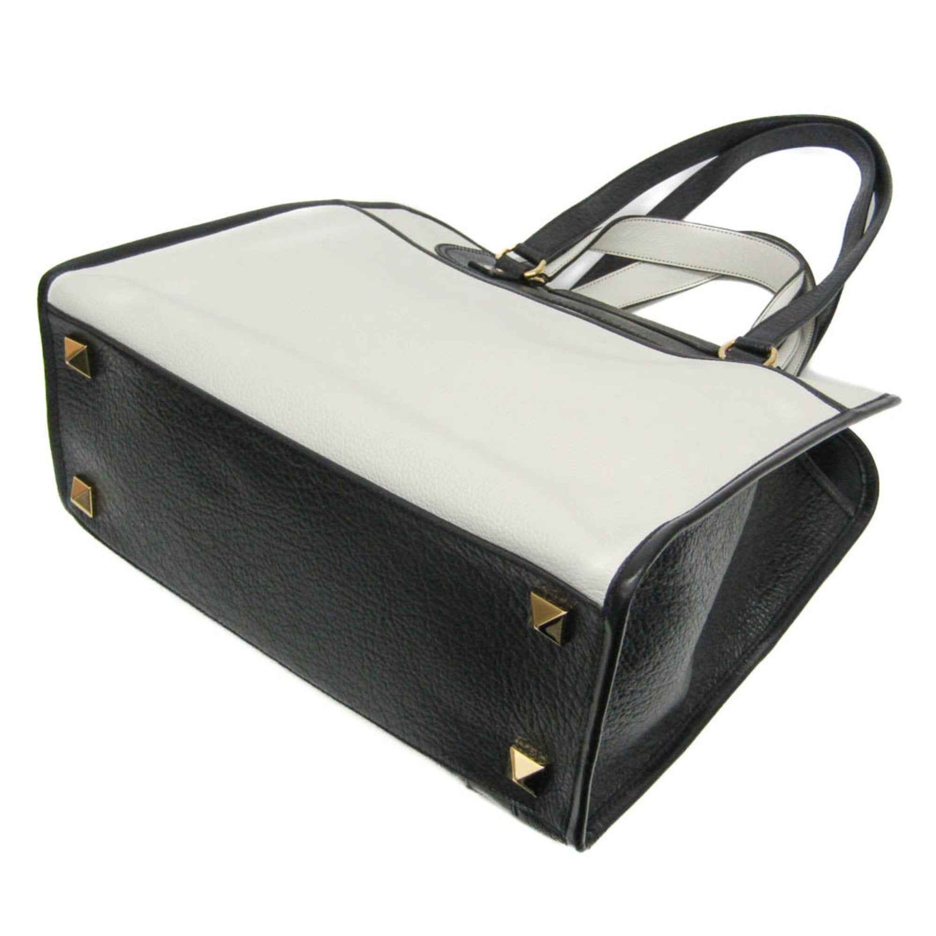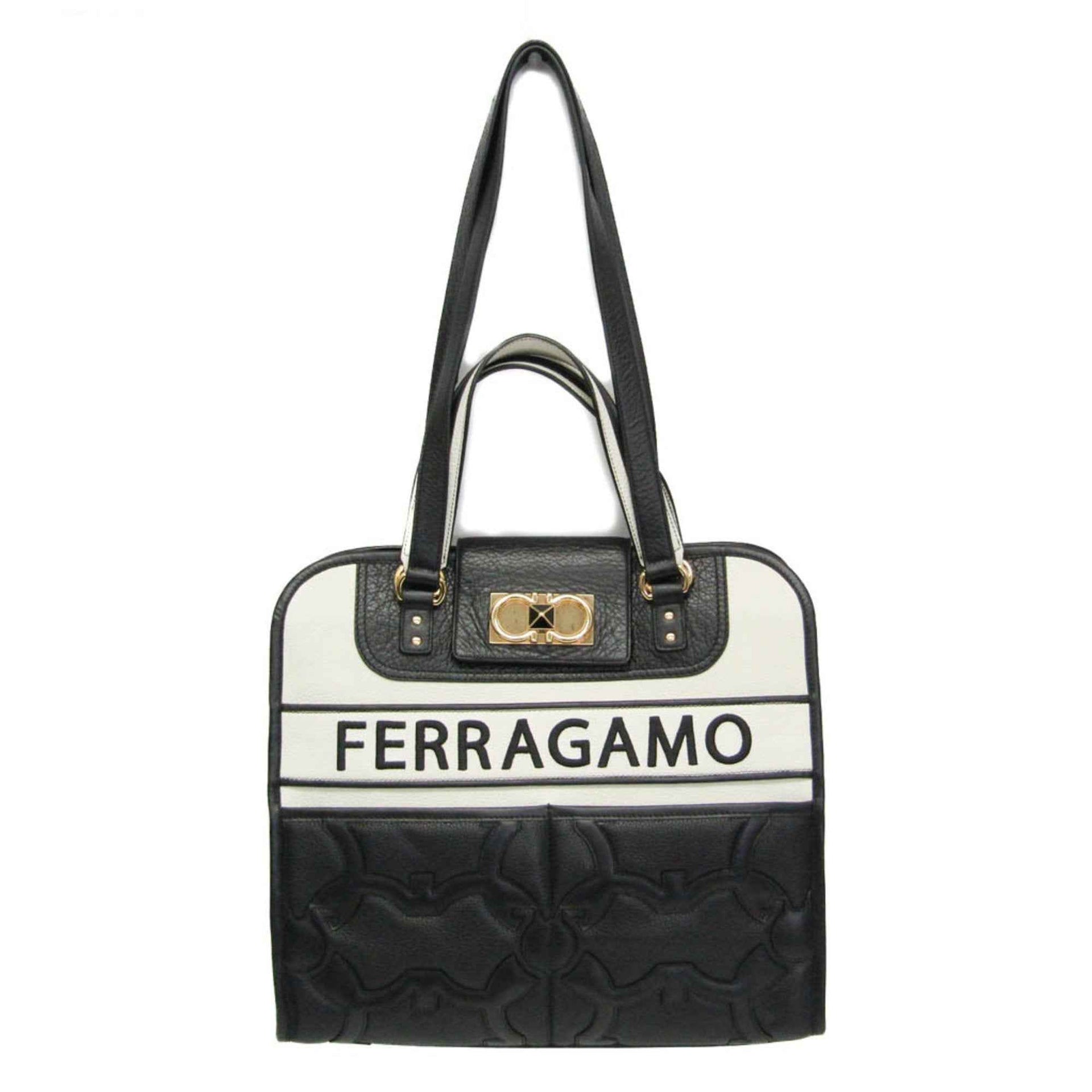 Salvatore Ferragamo Gancini Iconic AU-21 1418 Women\'s Leather Handbag,Tote Bag Black,White