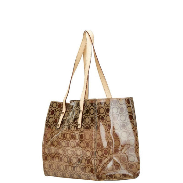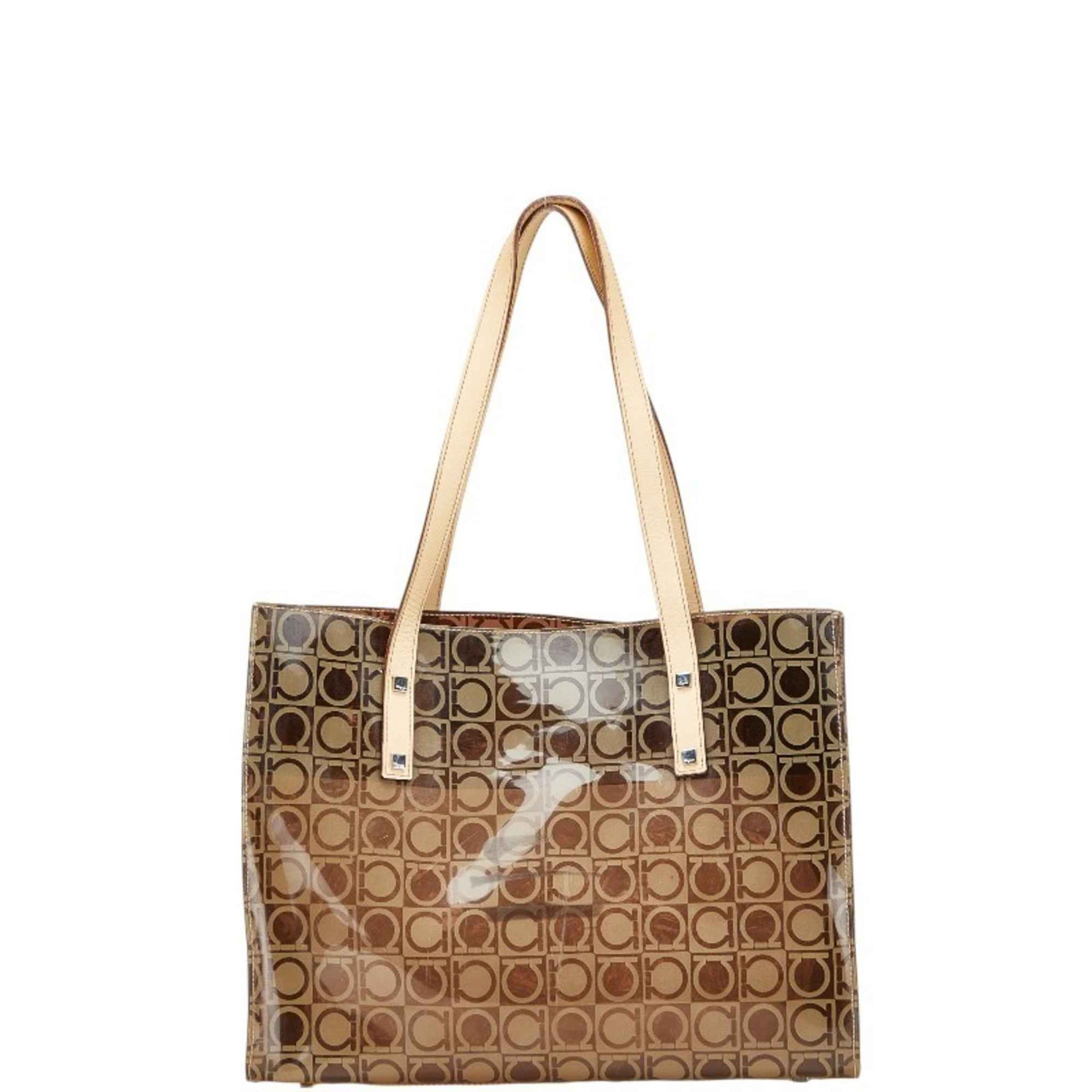 Salvatore Ferragamo Gancini Tote Bag, Brown Vinyl and Leather, Women\'s