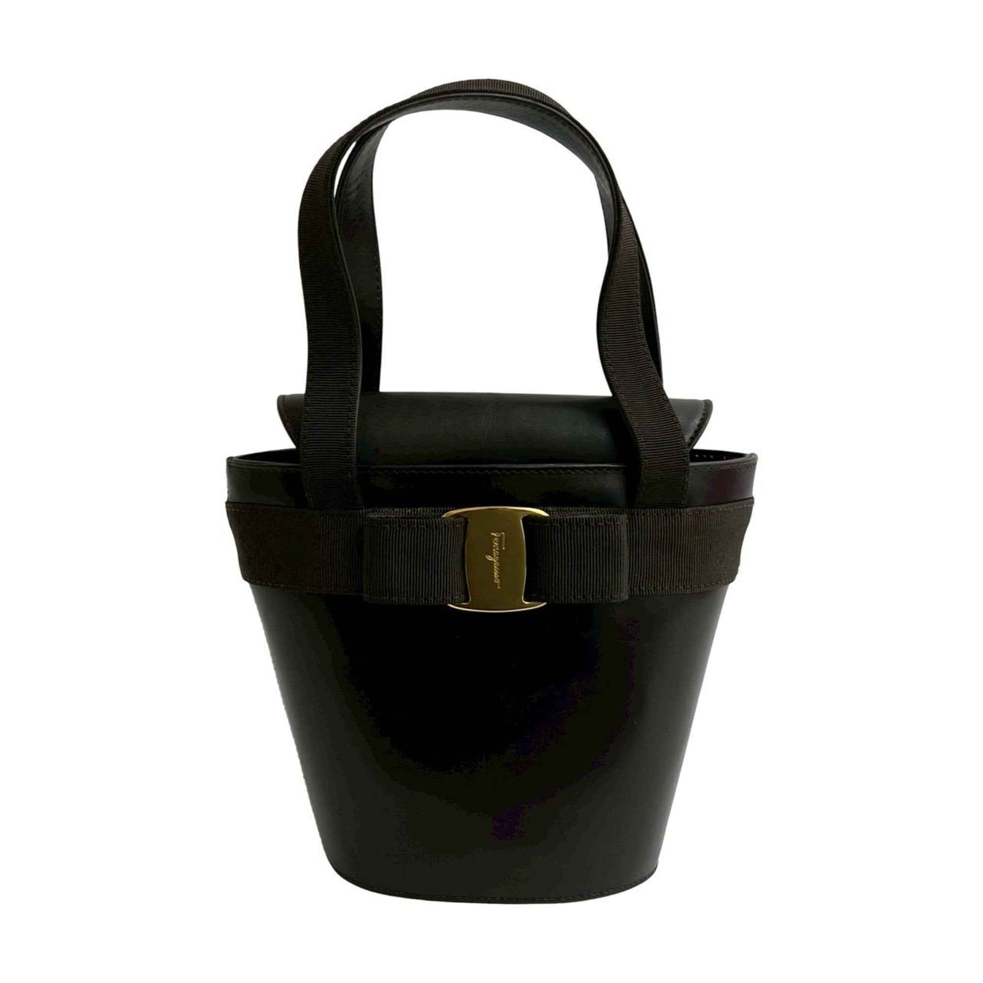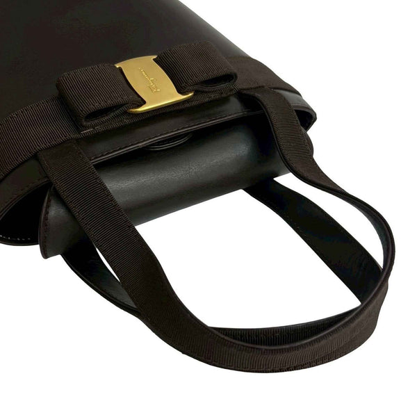 Salvatore Ferragamo Vara Ribbon Leather Handbag/Mini Tote Bag, Brown, d15-5